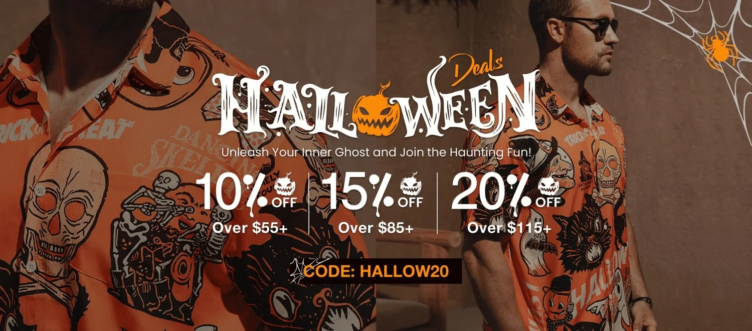 Moisture-Wicking Halloween Gradient Ghost Car Pumpkin Chest Pocket Hawaiian Shirt