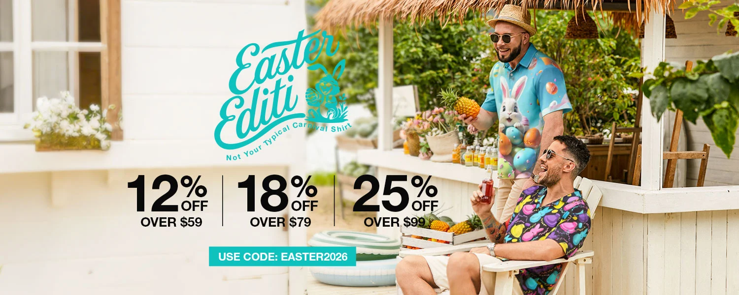Tall Size Moisture Wicking Easter Egg Bunny Chest Pocket Hawaiian Shirt