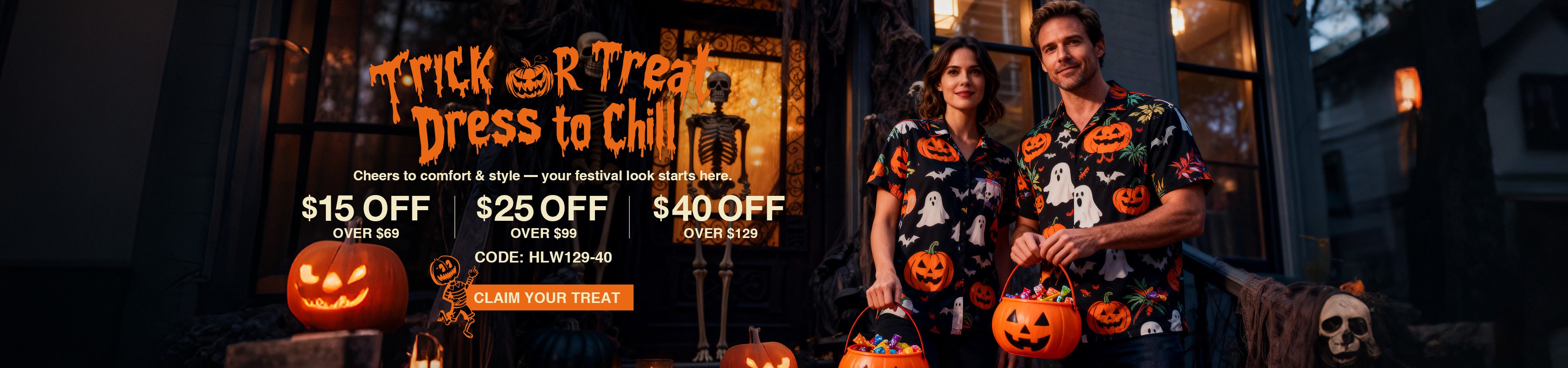 Moisture-Wicking Halloween Gradient Ghost Car Pumpkin Chest Pocket Hawaiian Shirt