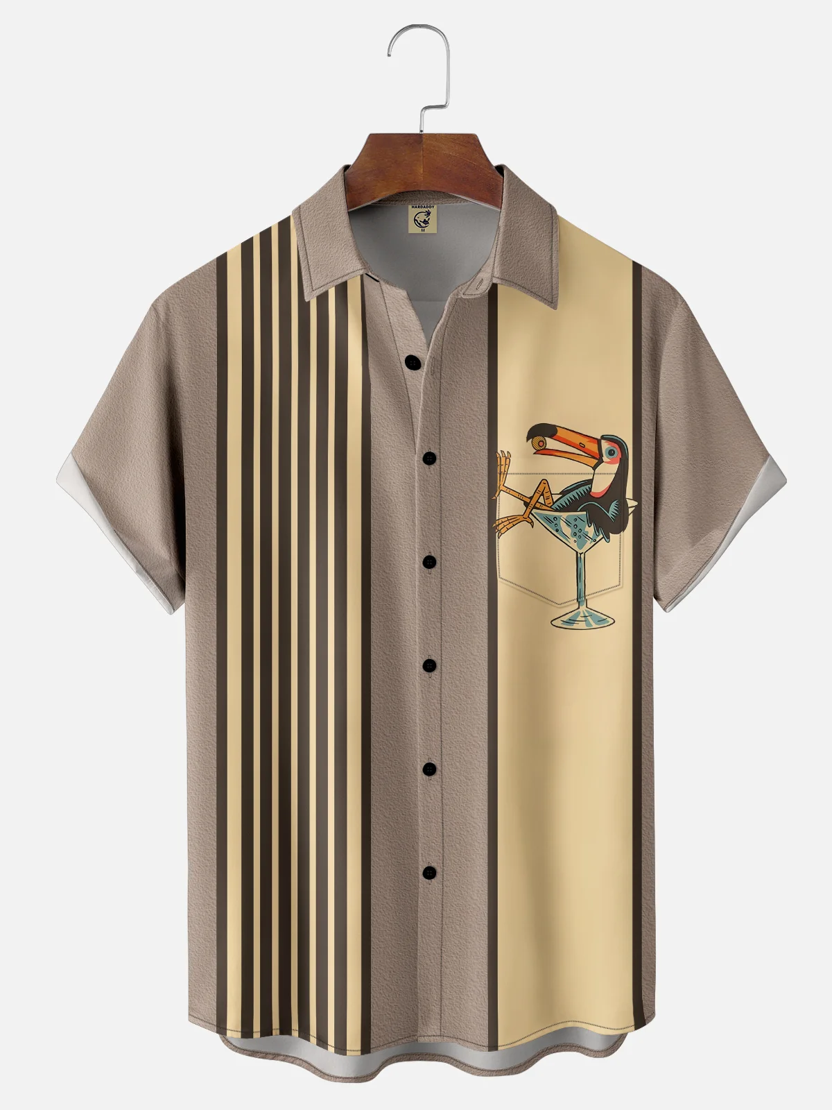 Hardaddy X Artist Funny Button Down Shirts Animal Toucans Chest Pocket Short Sleeve Vintage Bowling Shirt