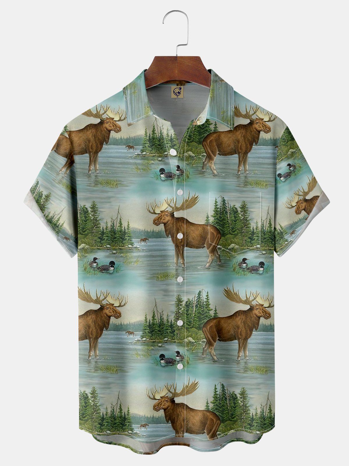 Animals Chest Pocket Short Sleeve Hawaiian Shirt
