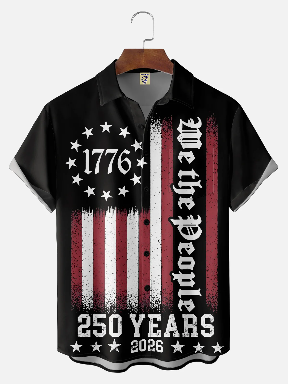 Big Size Moisture-wicking Semiquincentennial 250th Anniversary American Flag Chest Pocket Patriotic Shirt