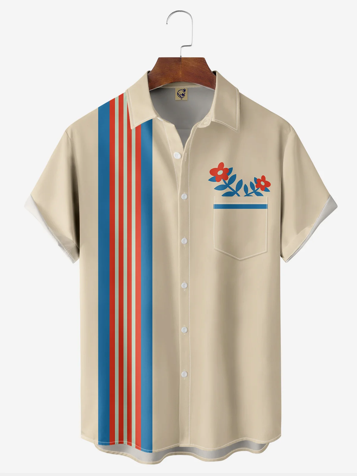 Flower Chest Pocket Short Sleeve Bowling Shirt