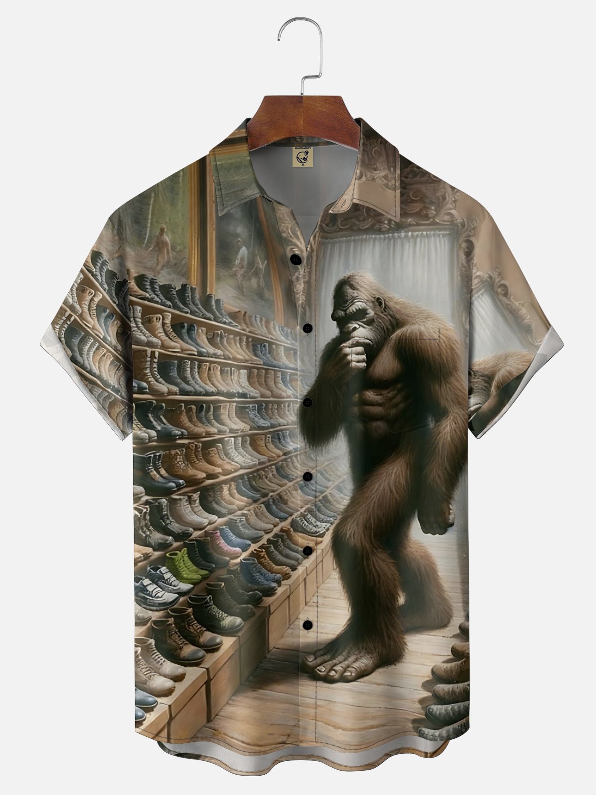 Moisture Wickin Fun Bigfoot Shoes Chest Pocket Holiday Hawaiian Shirts