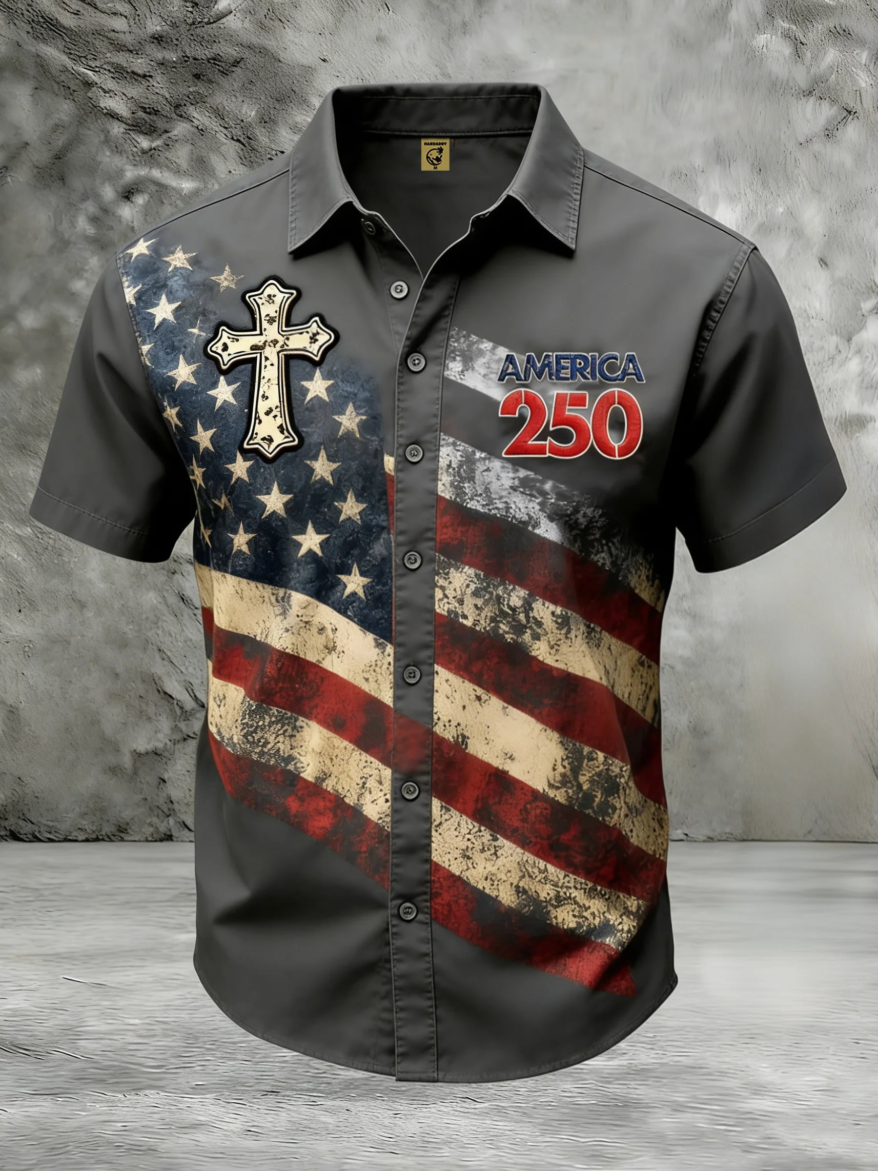 Moisture-wicking 250th Anniversary Independent Day American Flag USA Freedom Chest Pocket Patriotic Shirt