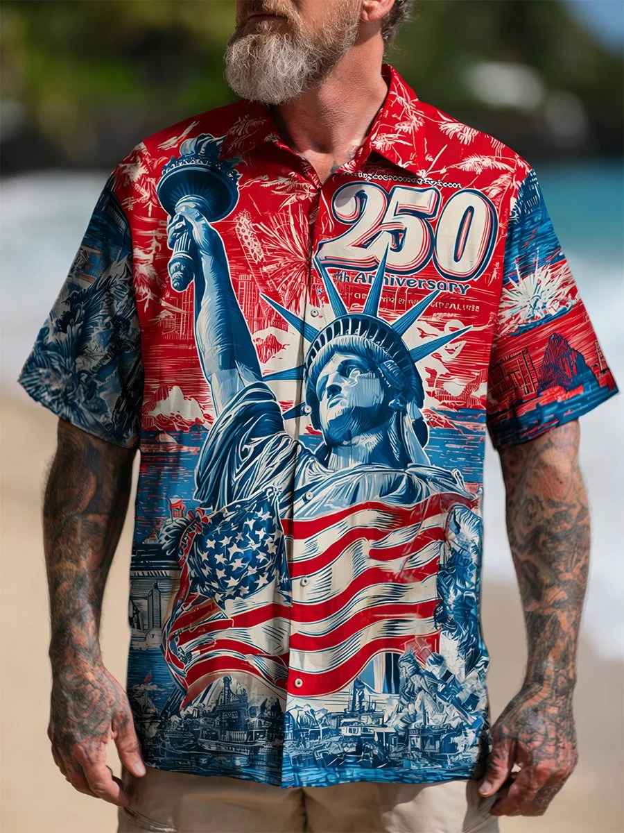 Moisture-wicking 250th Anniversary Independent Day Statue of Liberty American Flag USA Freedom Chest Pocket Patriotic Shirt
