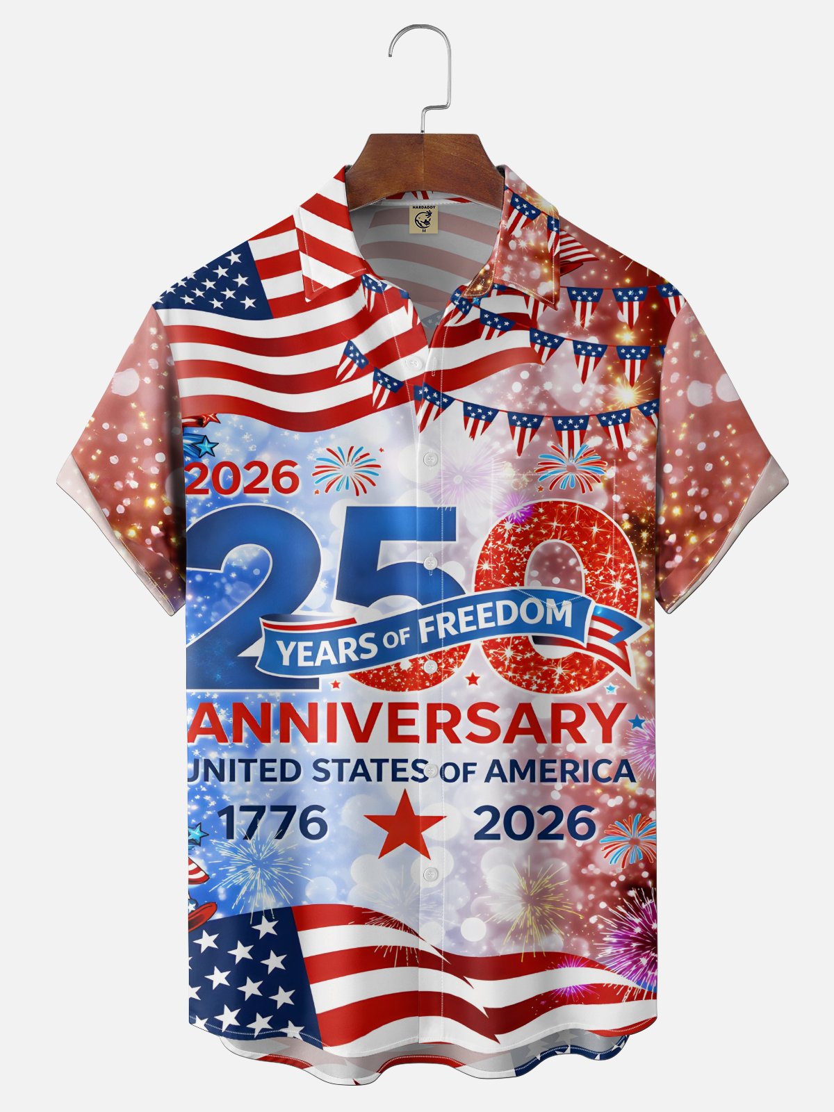 Moisture Wicking 250th Anniversary Of Independence Day American Flag Fireworks Chest Pocket Holiday Shirt
