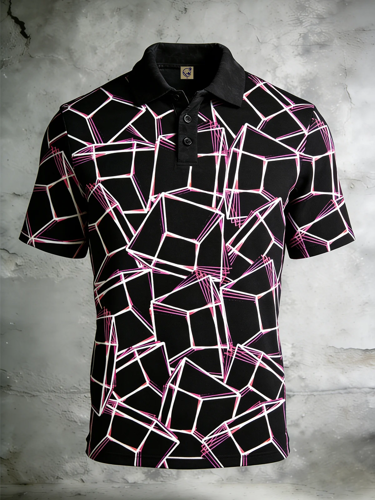 Moisture-Wicking 3D Abstract Gradient & Geometric Short-Sleeve Holiday Golf Polo