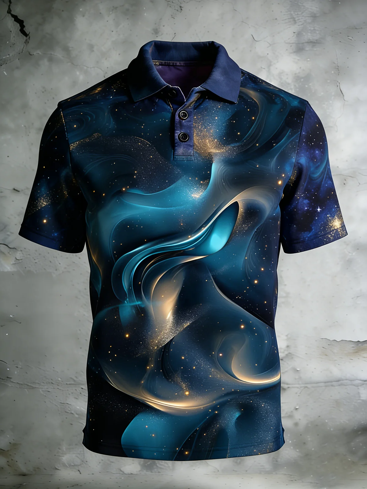 Moisture Wicking 3D Abstract Gradient Stripes Short Sleeve Golf Polo