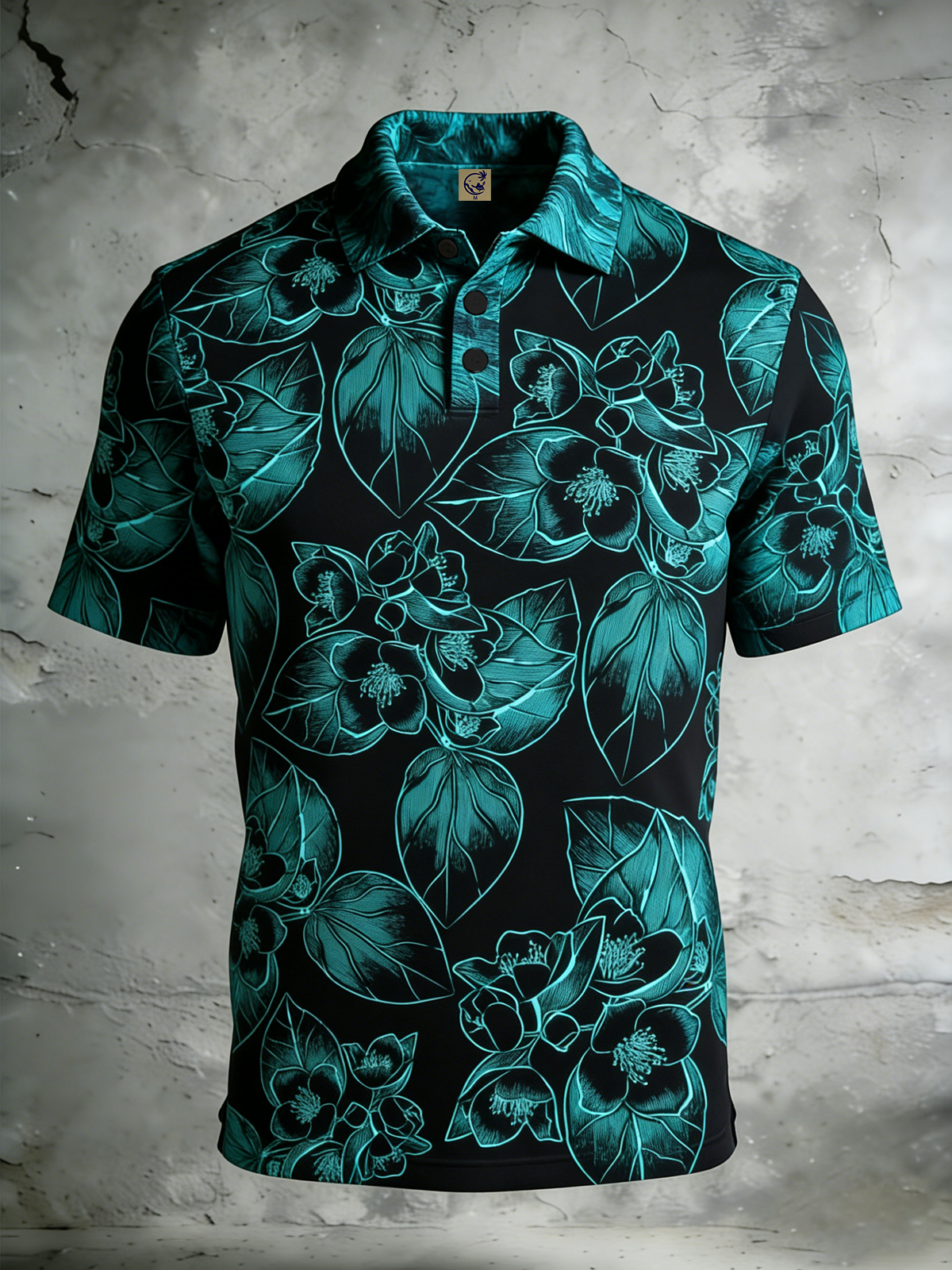 Moisture-Wicking 3D Abstract Gradient & Textured Floral Short-Sleeve Holiday Golf Polo