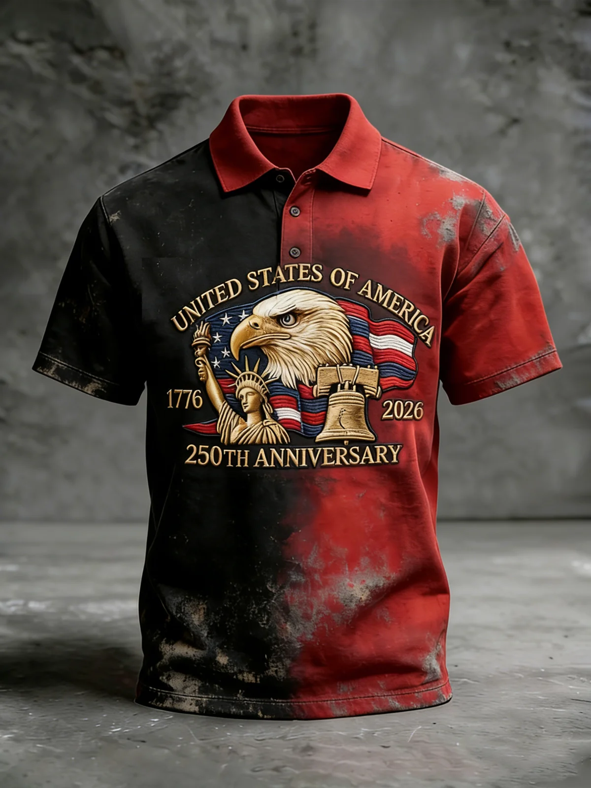 Moisture-Wicking 3D Abstract Gradient U.S. Flag, Eagle, and Statue of Liberty 250th Anniversary Short-Sleeve Holiday Golf Polo