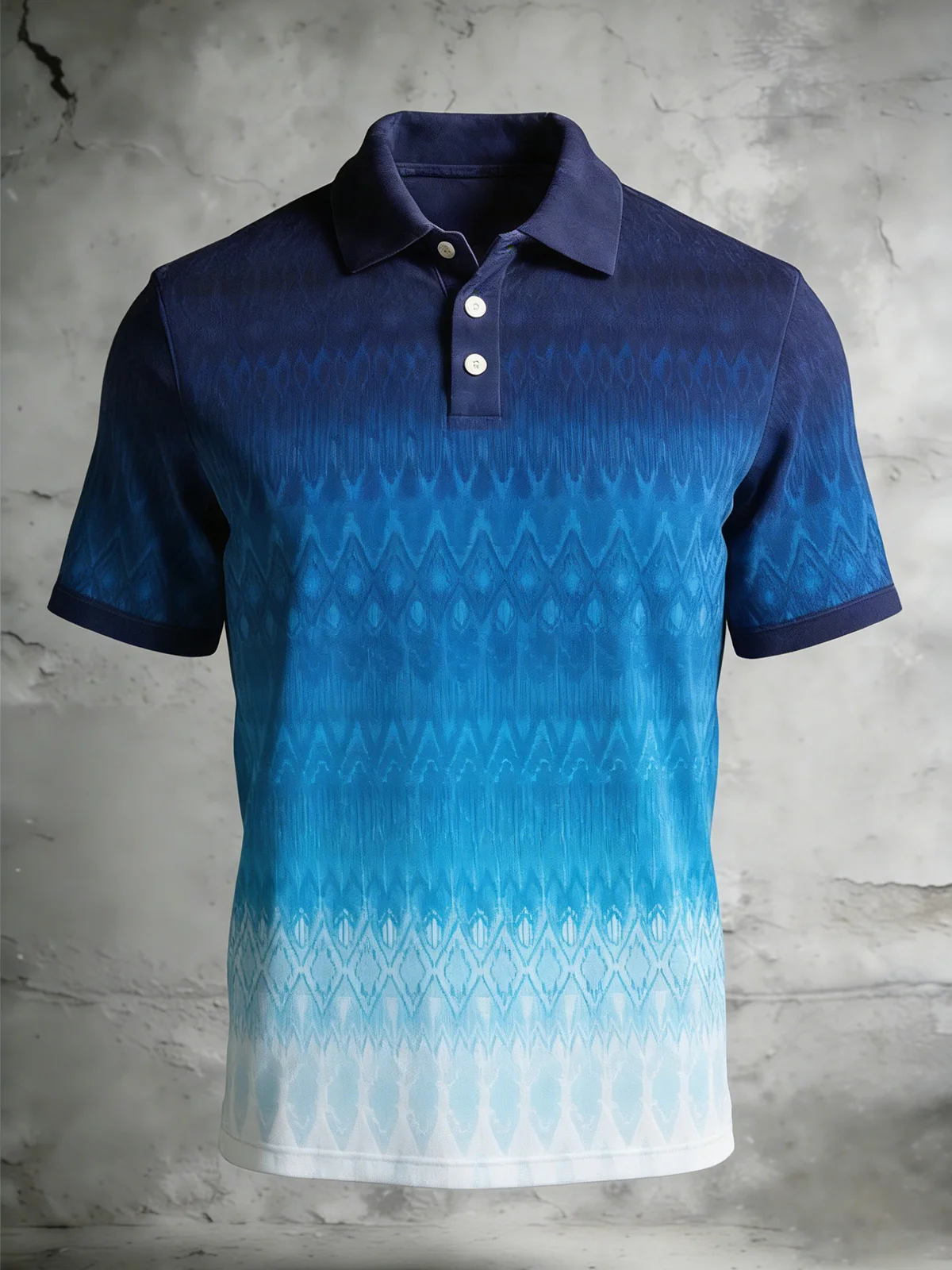 Moisture Wicking 3D Gradient Abstract Geometric Short Sleeve Golf Polo