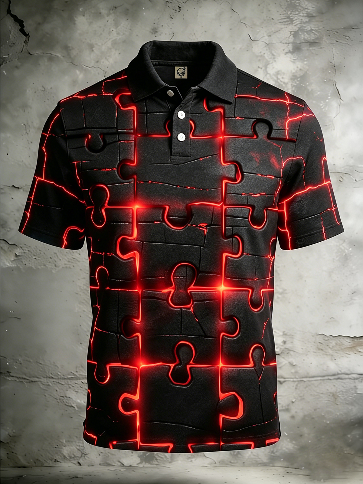 Moisture-Wicking 3D Gradient Abstract Geometric Short-Sleeve Holiday Golf Polo