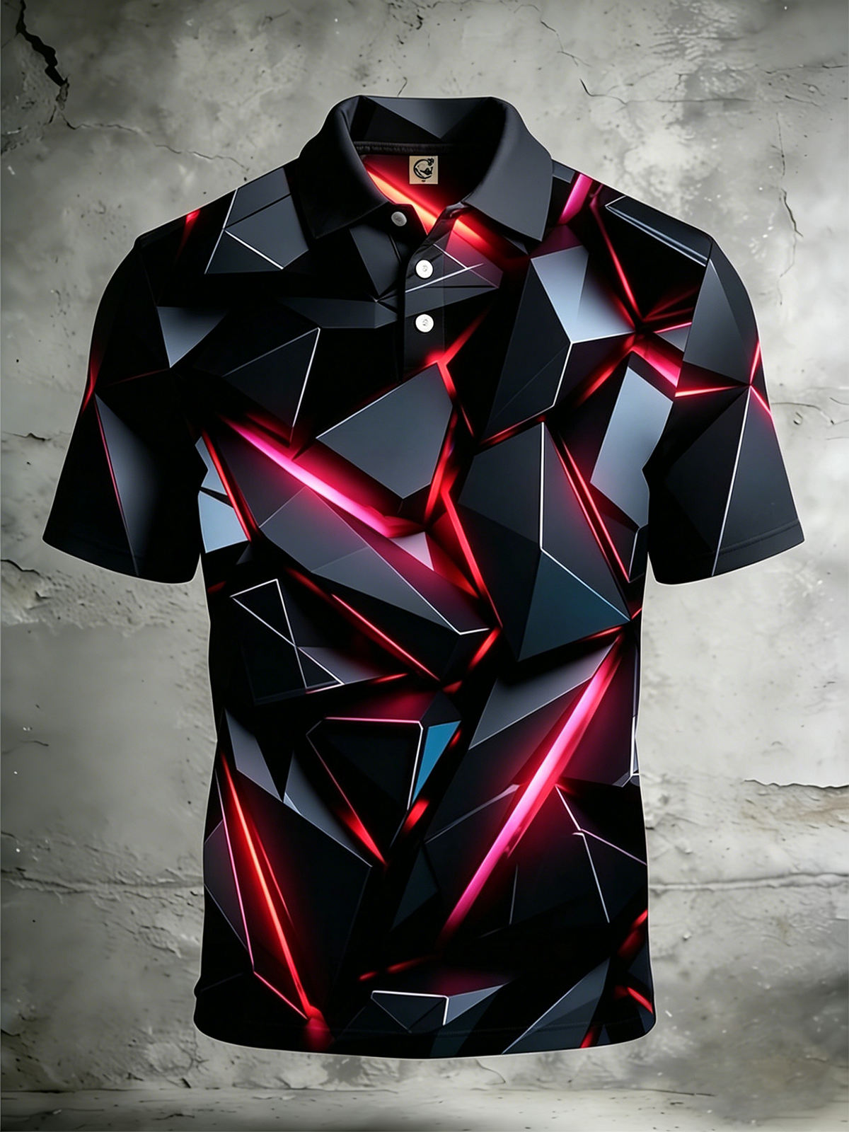 Moisture-Wicking 3D Gradient Abstract Mechanical Geometric Short-Sleeve Holiday Golf Polo