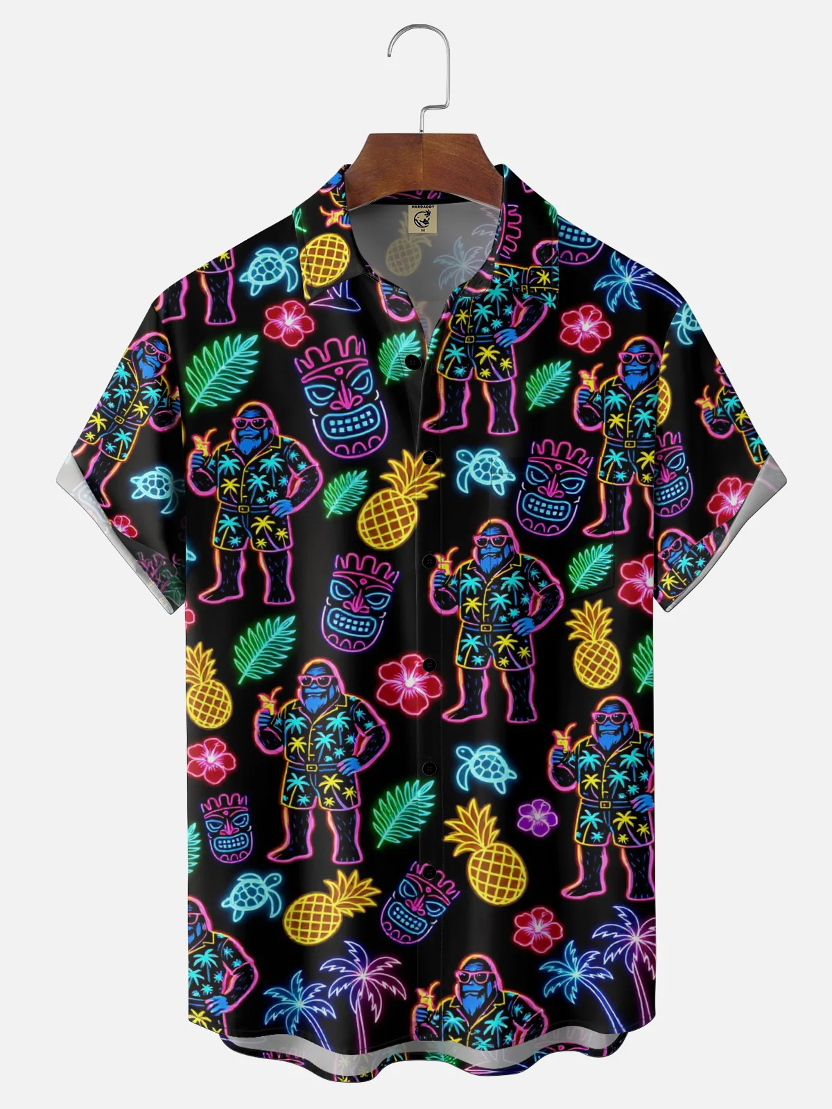 Moisture-Wicking Abstract Fruit Bigfoot Chest Pocket Holiday Hawaiian Shirt
