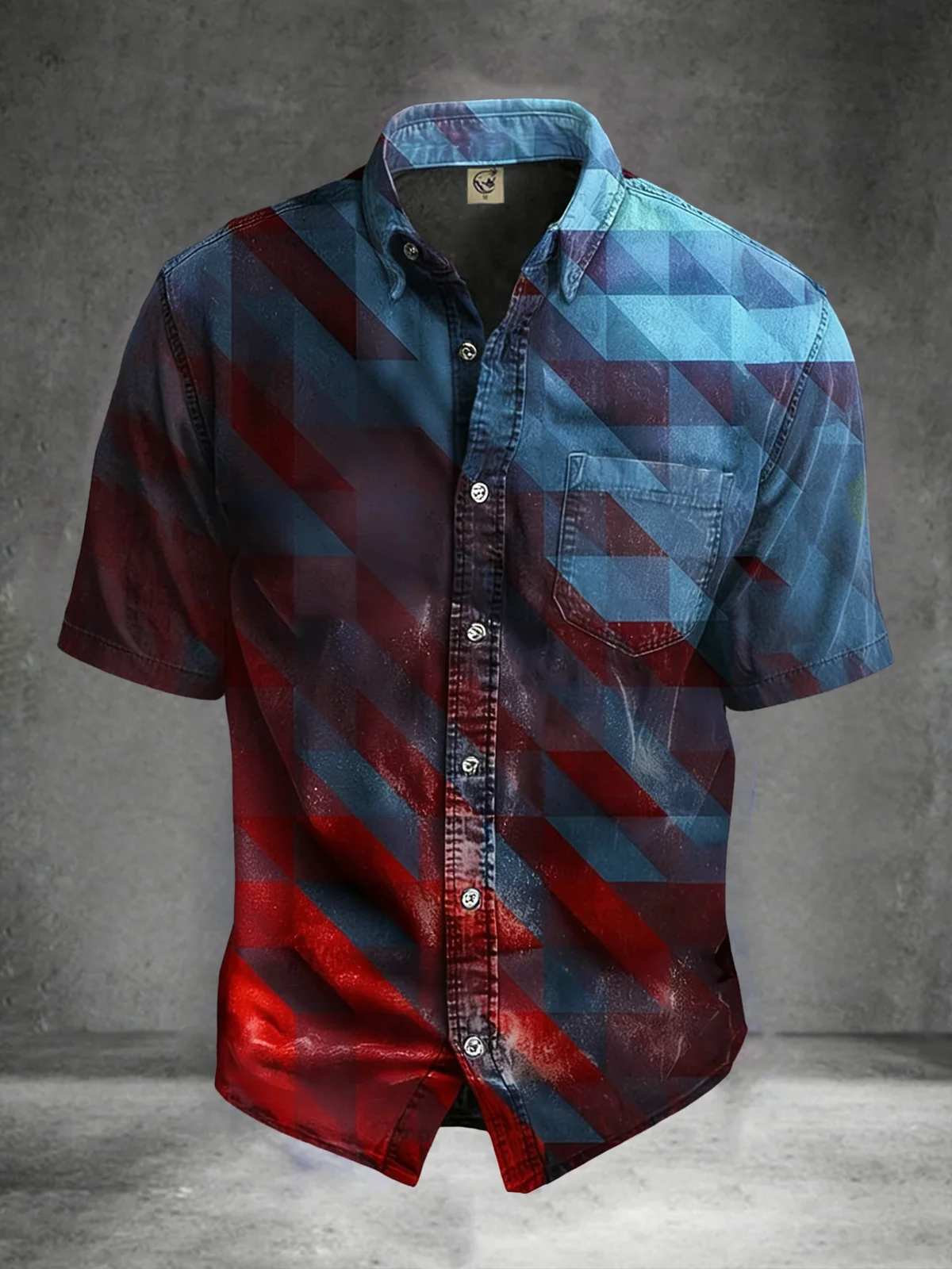Moisture-Wicking Abstract Gradient Geometric Pattern and Chest Pocket Holiday Hawaiian Shirt