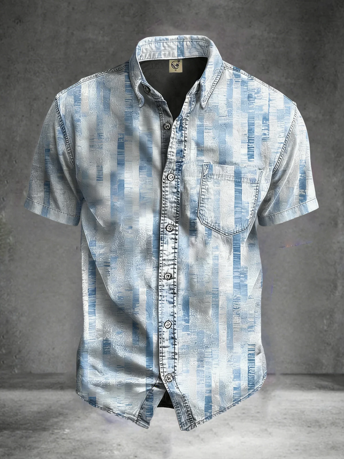 Moisture-Wicking Abstract Gradient Geometric Pattern Chest Pocket Holiday Hawaiian Shirt