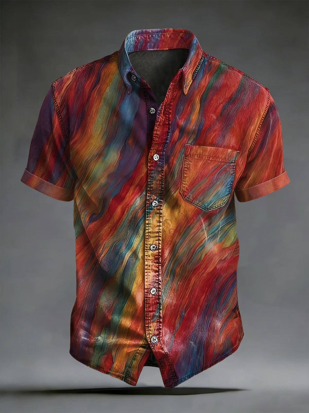 Moisture-Wicking Abstract Gradient Striped Chest Pocket Holiday Shirt