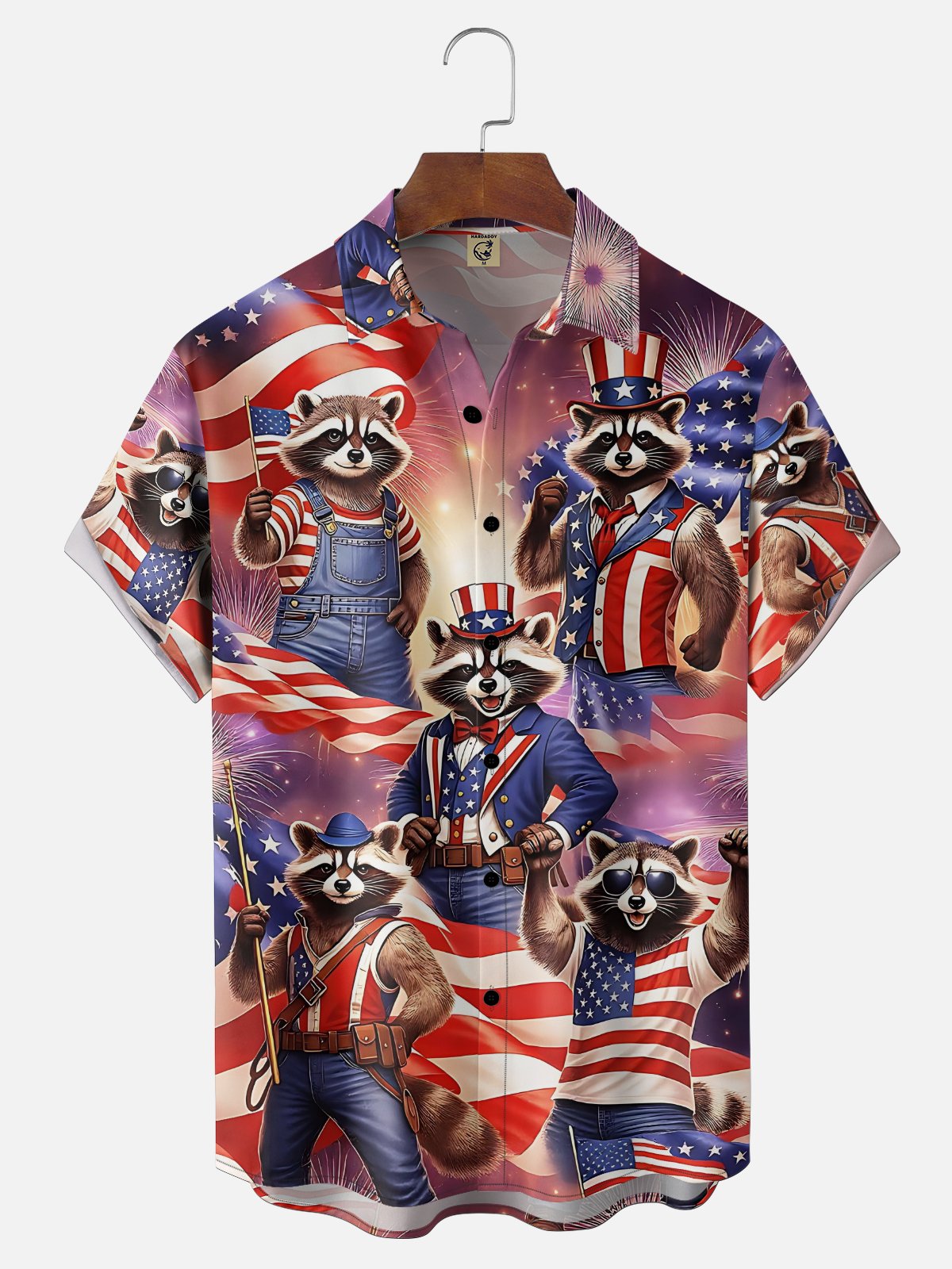 Moisture Wicking American Eagle Gradient Color Raccoon Chest Pocket Holiday Shirt