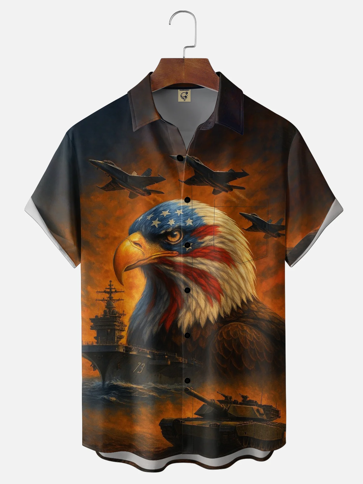 Moisture-wicking American Flag Eagle Chest Pocket Casual Shirt