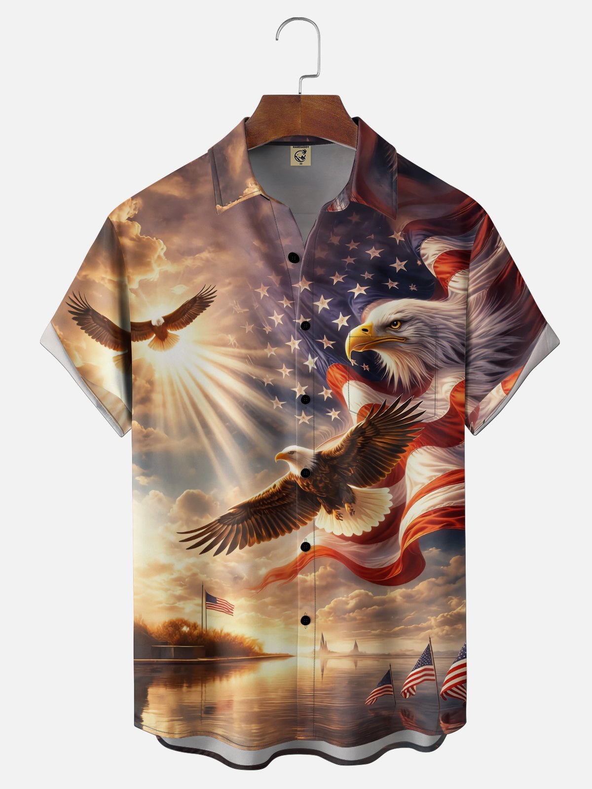 Moisture-wicking American Flag Eagle Chest Pocket Casual Shirt