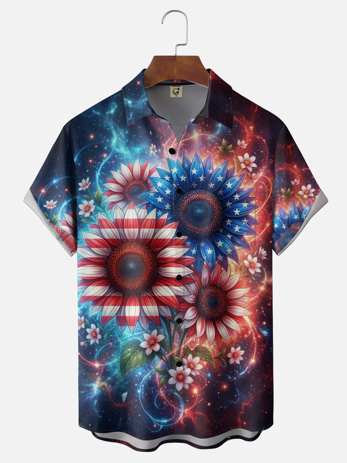 Moisture-wicking American Flag Flower Chest Pocket Casual Shirt