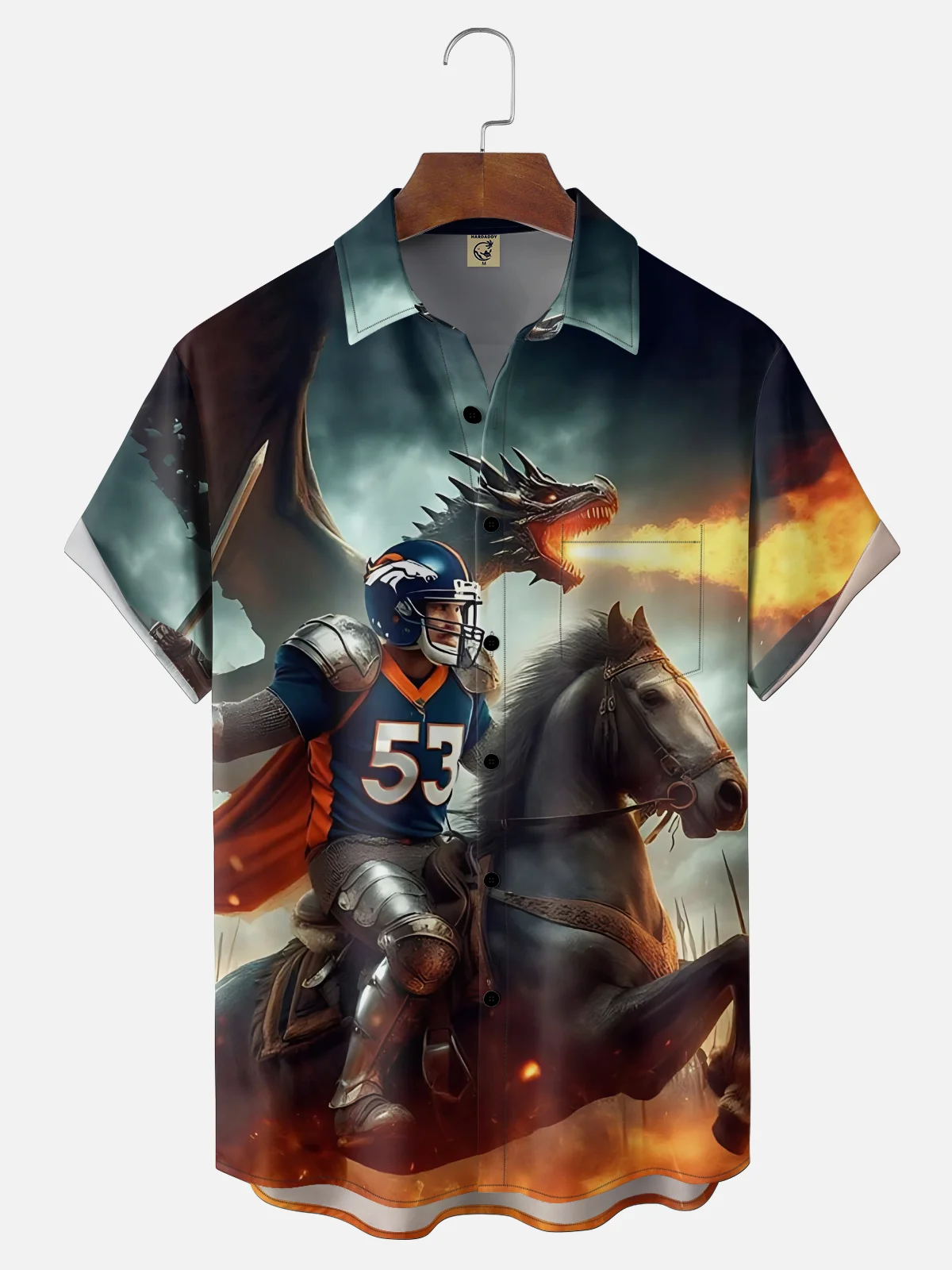Moisture-wicking American Football Denver Art Broncos Chest Pocket Casual Shirt