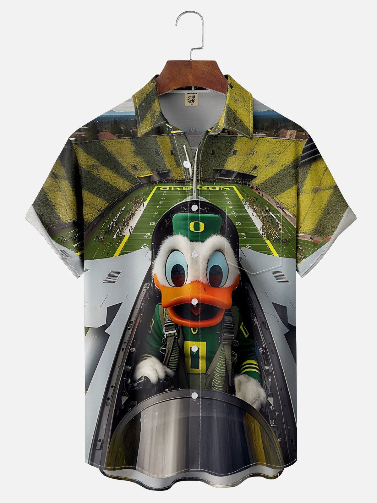Moisture-wicking American Football Oregon Art Ducks Chest Pocket Casual Shirt