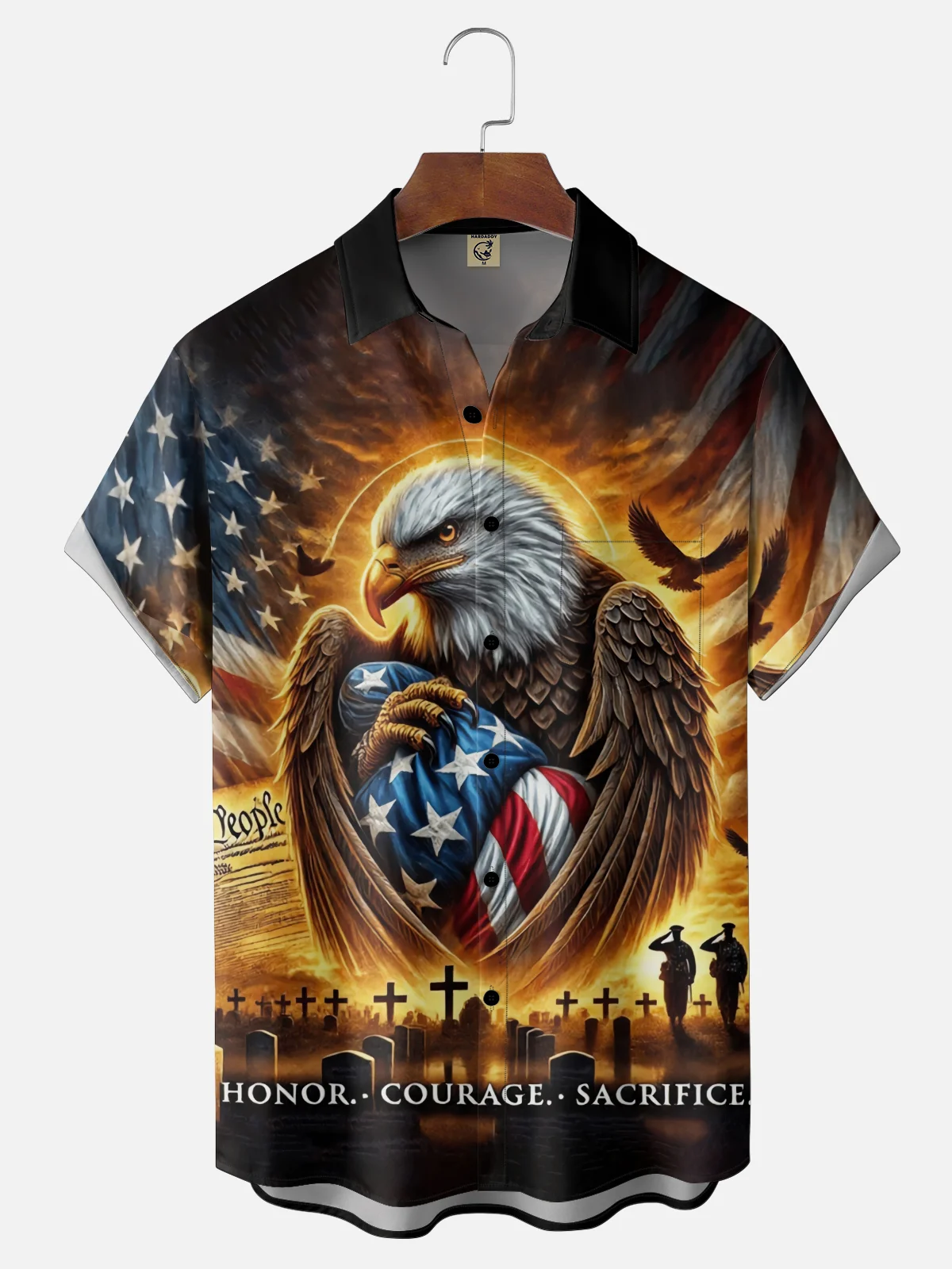 Moisture Wicking American HONOR COURAGE SACRIFICE Chest Pocke Holiday Hawaiian Shirt
