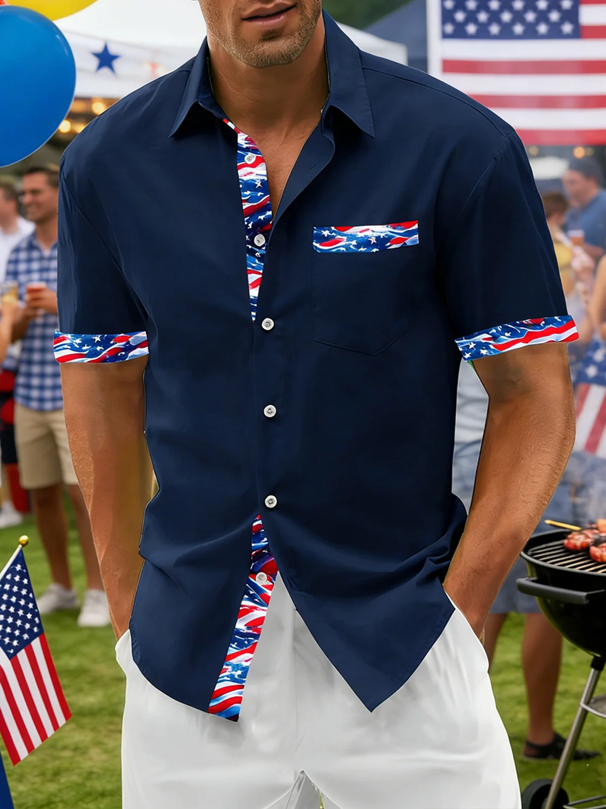 Moisture Wicking  Anniversary Of The United States Independence Day Chest Pocket Holiday Hawaiian Shirt