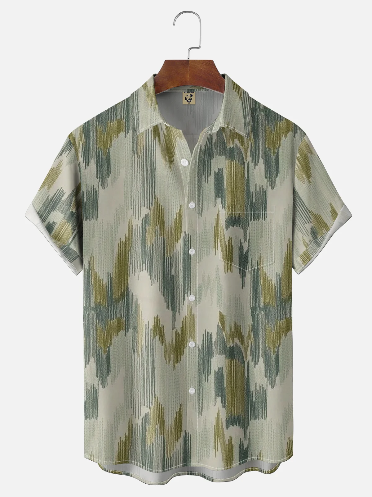 Moisture-wicking Artistic Abstract Wood Grain Chest Pocket Casual Shirt