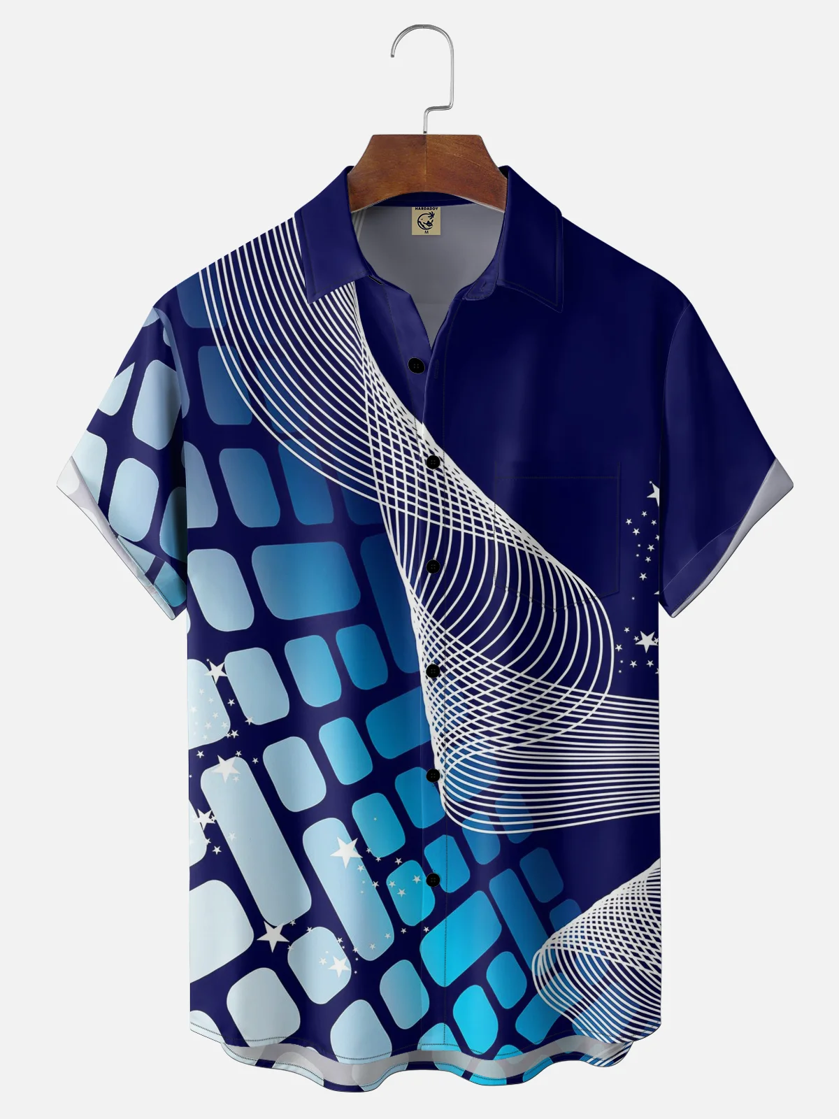 Moisture-wicking Artistic Geometric Grid Lines Chest Pocket Casual Shirt