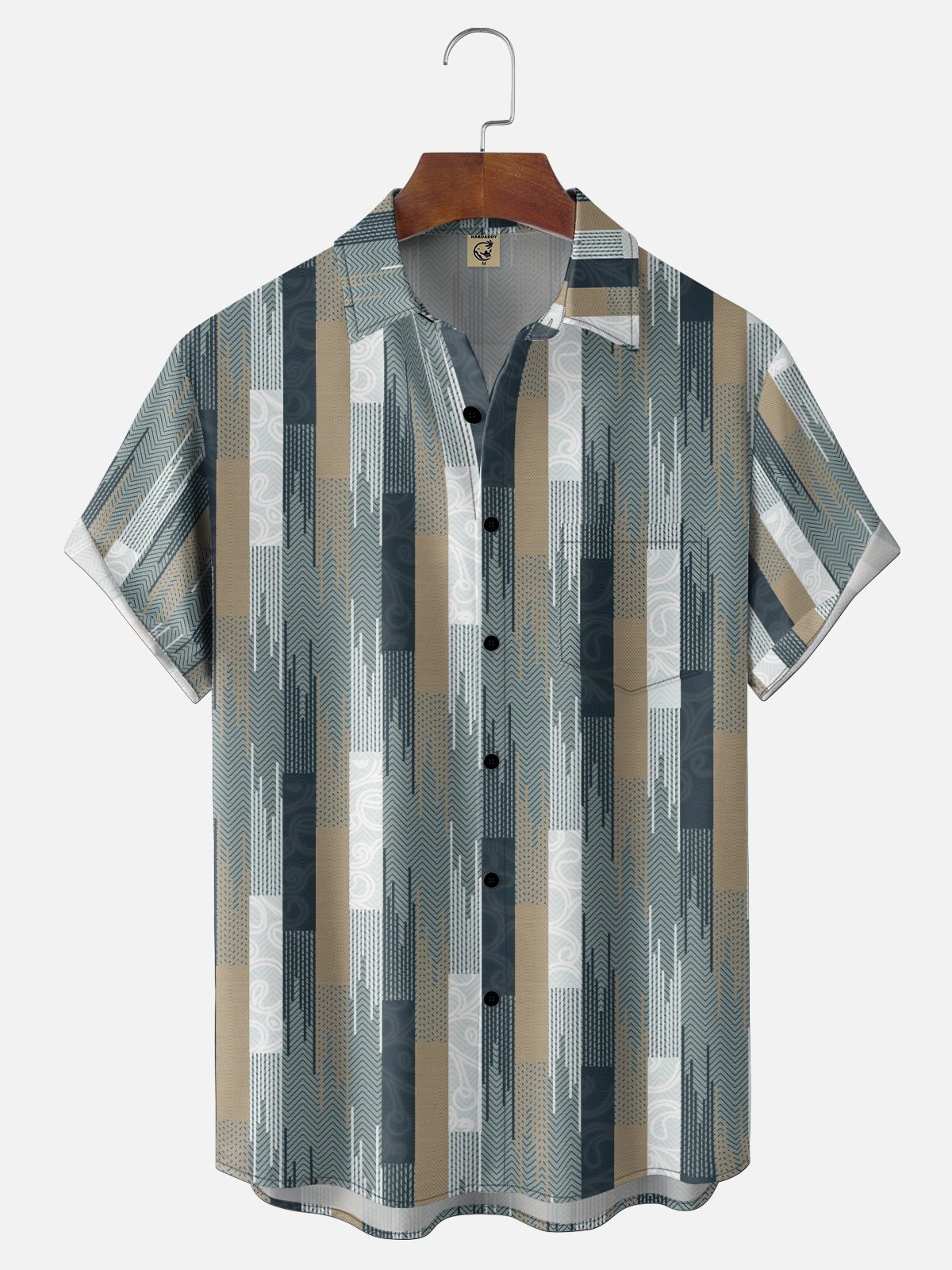 Moisture-wicking Artistic Geometric Stripes Chest Pocket Casual Shirt