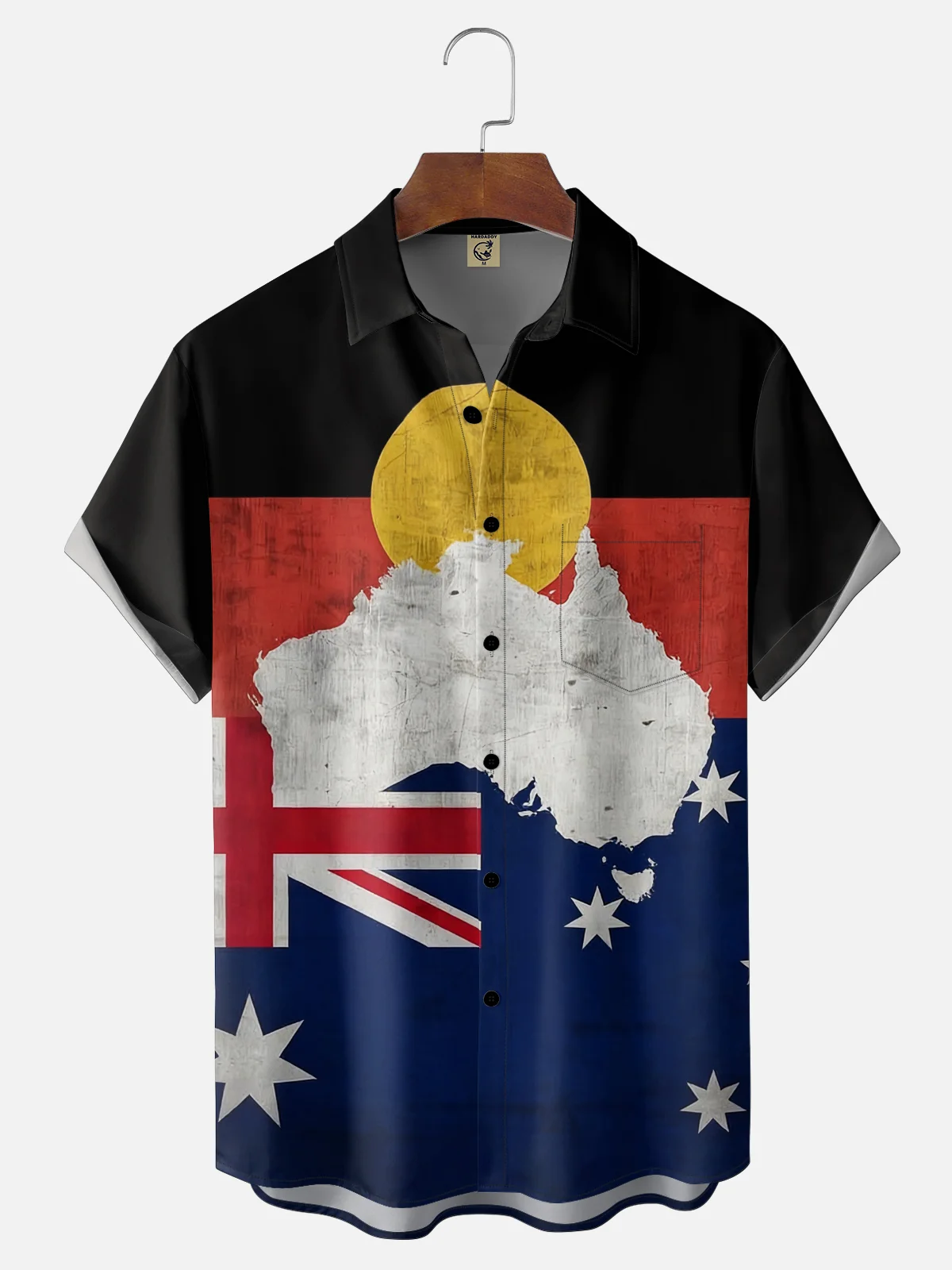 Moisture-wicking Australia Day Flag Art Chest Pocket Casual Shirt