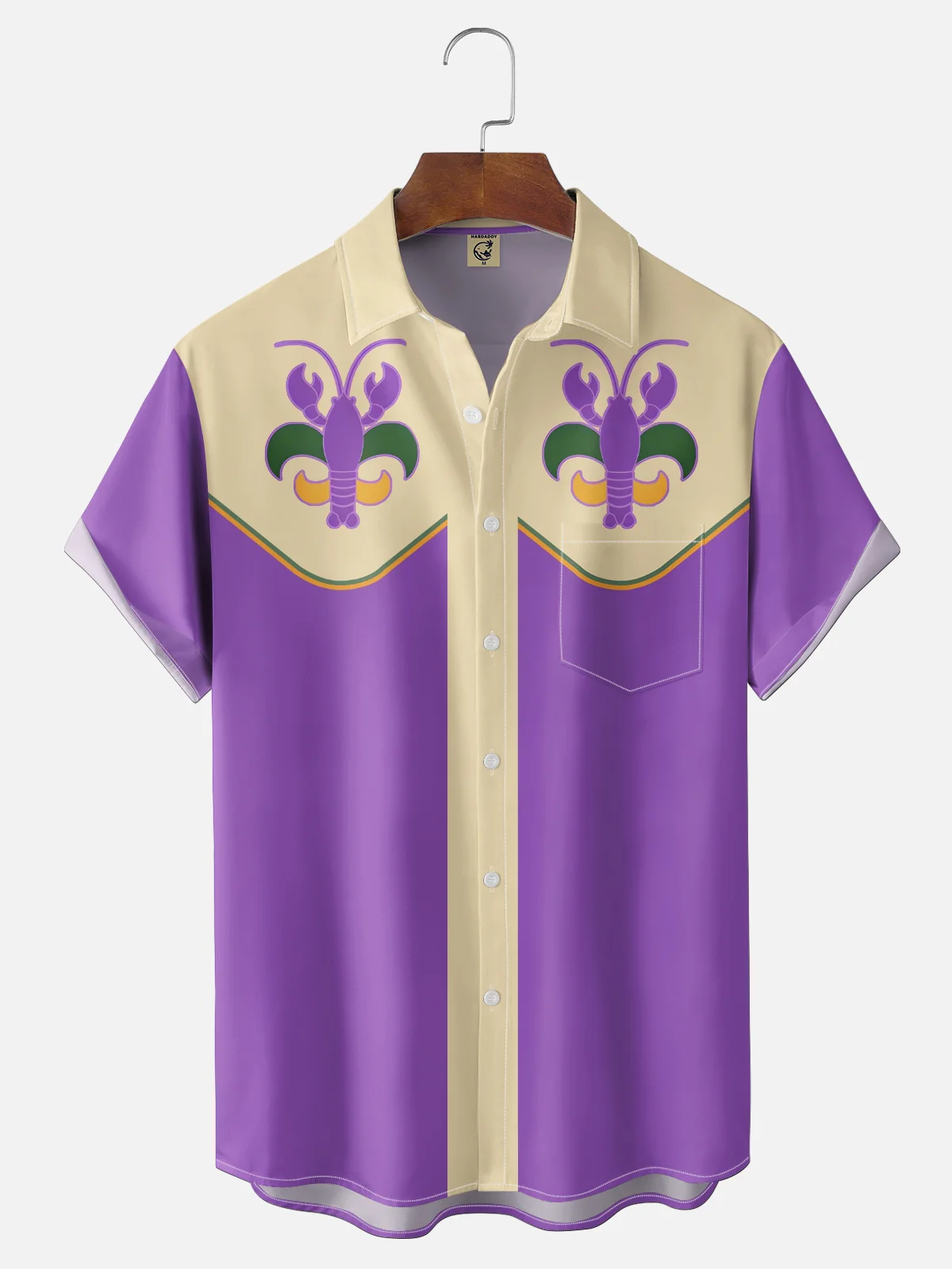 Moisture Wicking Carnival Lobster Geometry Chest Pocket Holiday Shirt
