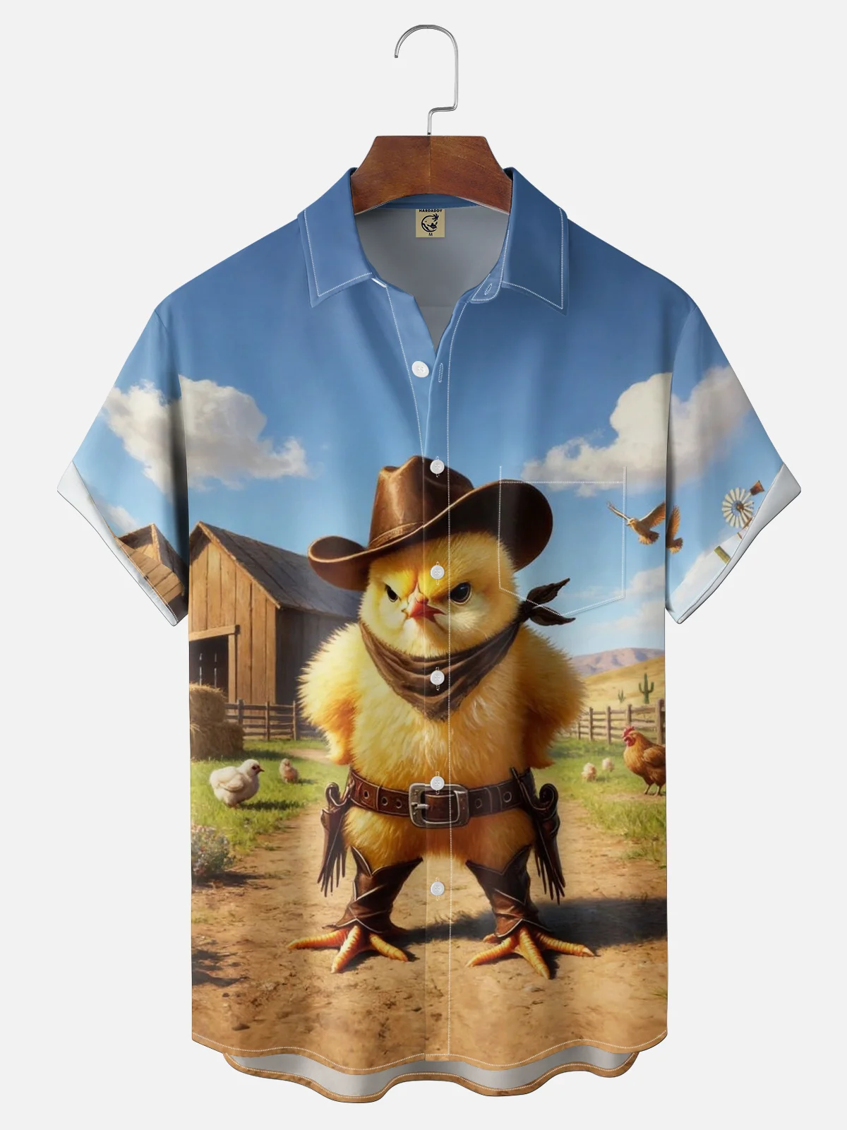 Moisture-wicking Chicken Western Cowboy Funny Chest Pocket Casual Shirt