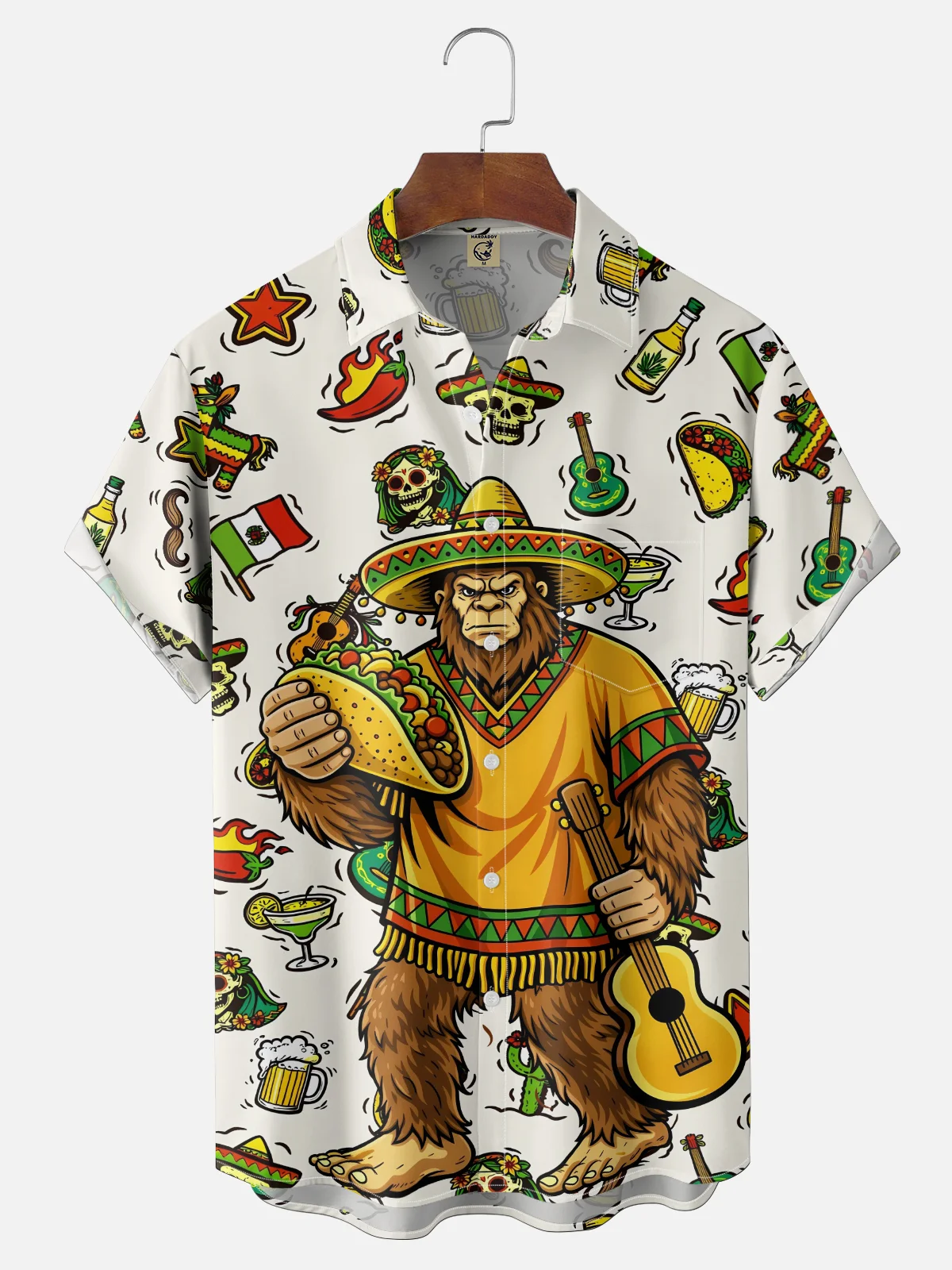 Moisture Wicking Cinco De Mayo Bigfoot Maracan Taco Guitar Chest Pocket Holiday Shirt