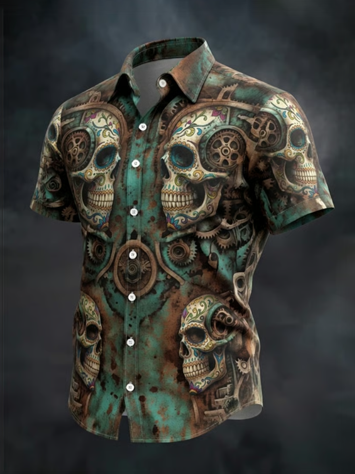 Moisture-Wicking Cinco de Mayo Floral Skull Chest Pocket  Holiday Hawaiian Shirt