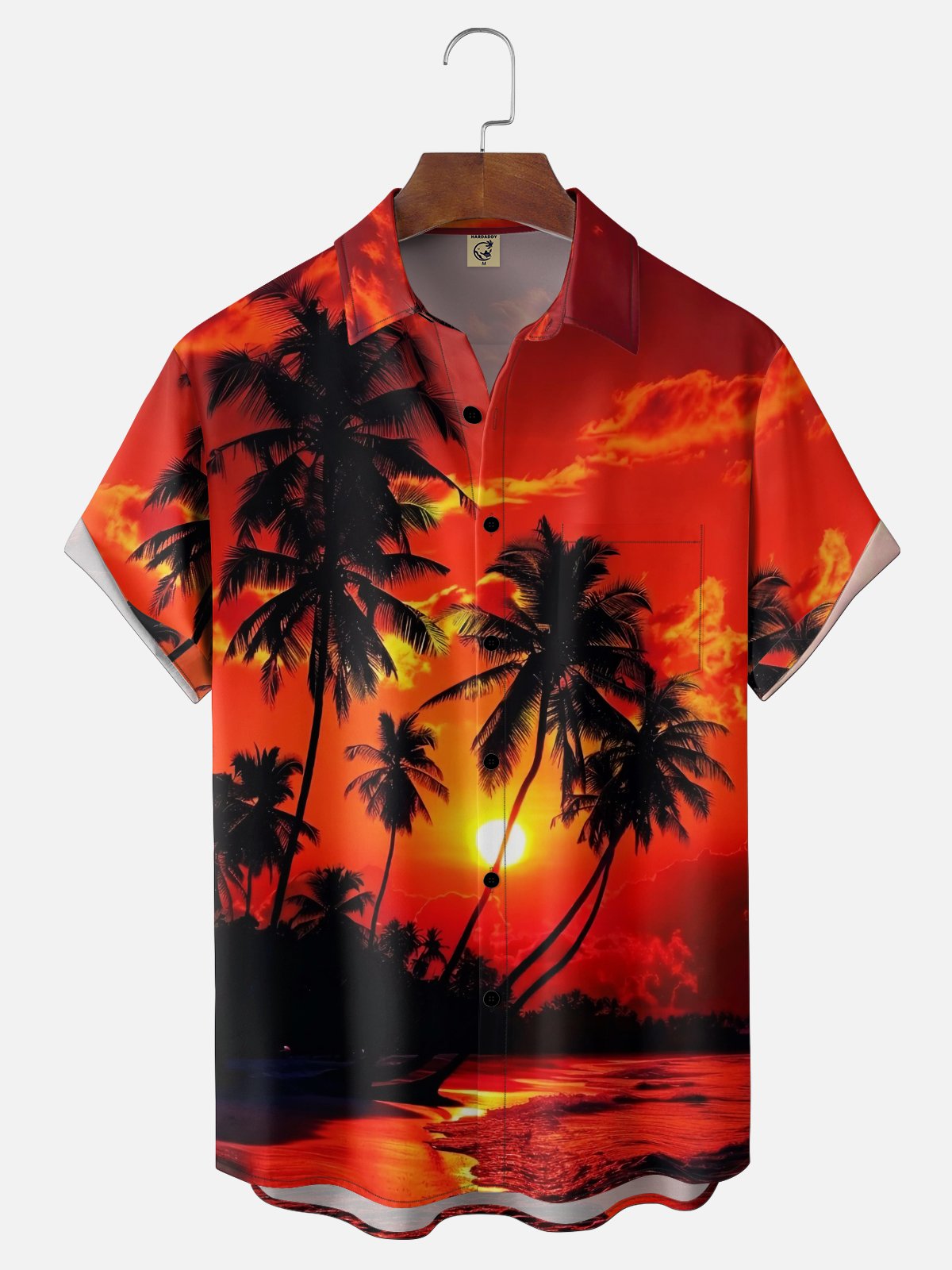 Moisture-wicking Coconut Tree Beach Chest Pocket Hawaiian Shirt