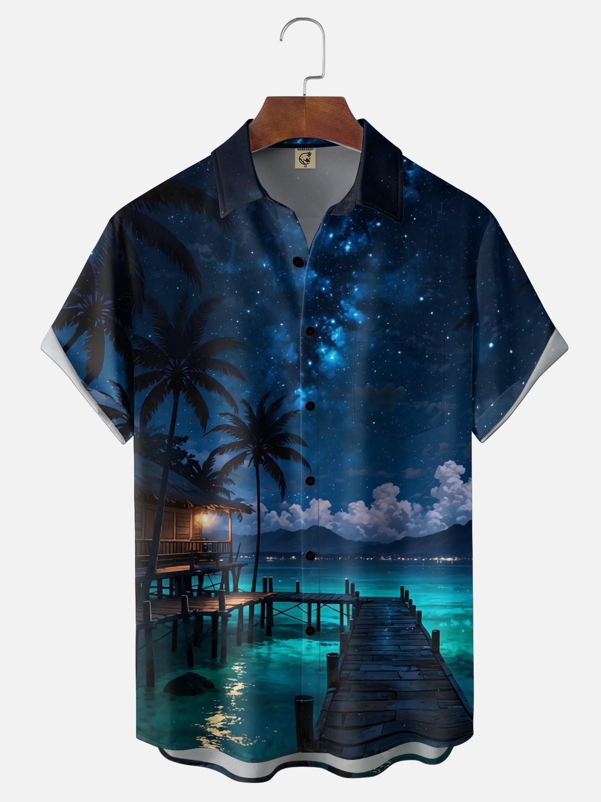 Moisture-wicking Coconut Tree Beach Chest Pocket Hawaiian Shirt