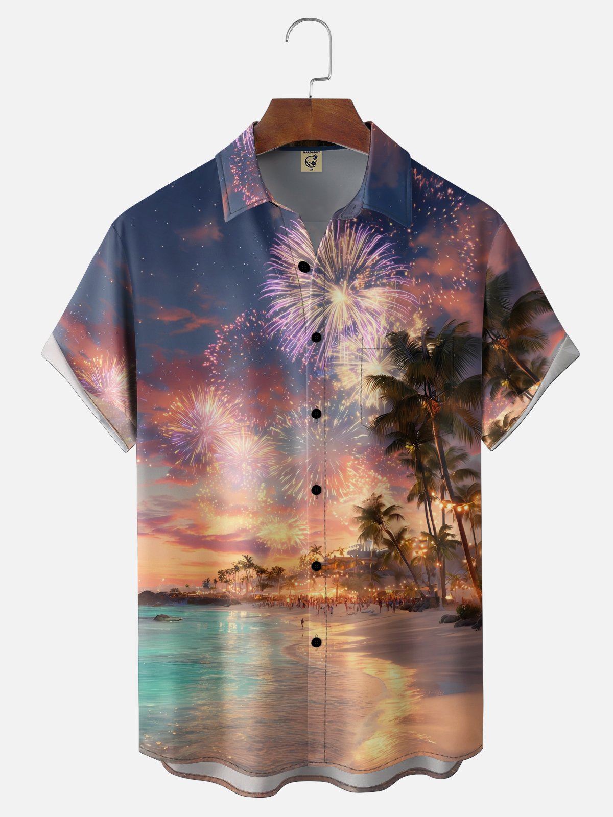 Moisture-wicking Coconut Tree Beach Chest Pocket Hawaiian Shirt