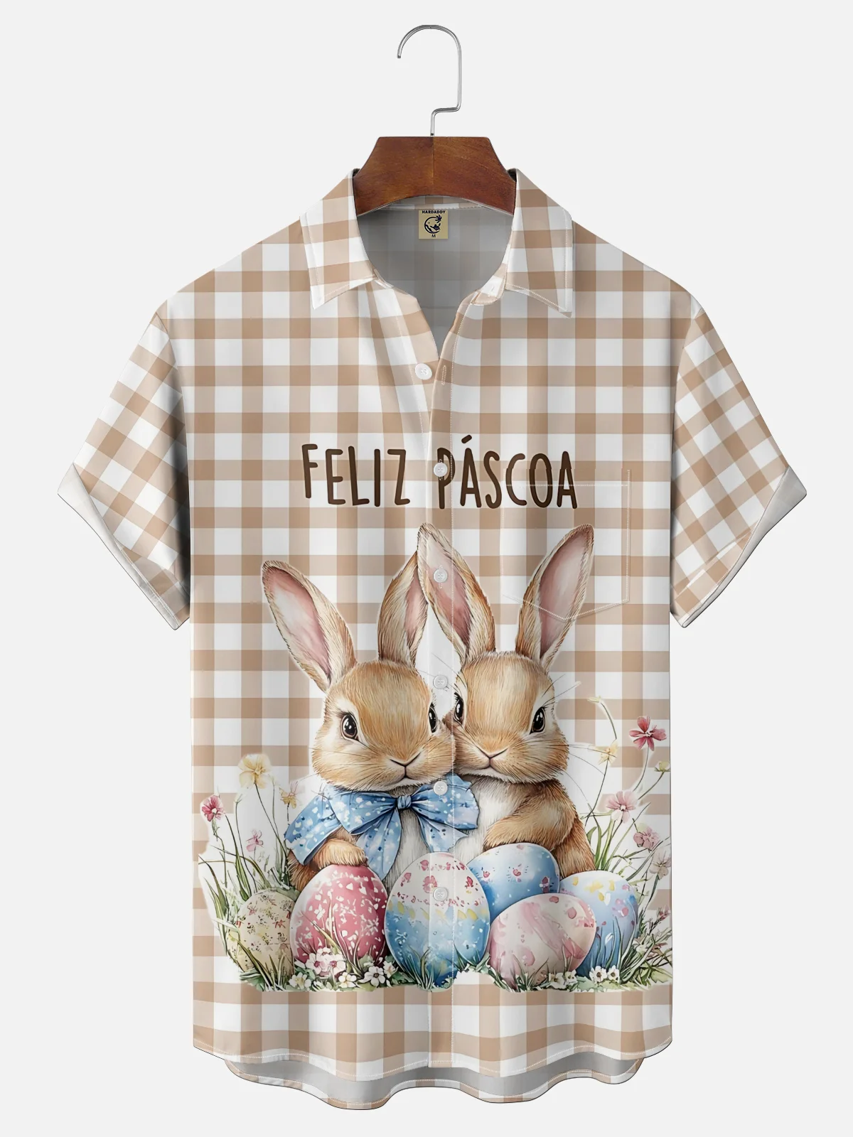 Moisture-wicking Easter Bunny Chest Pocket Casual Shirt