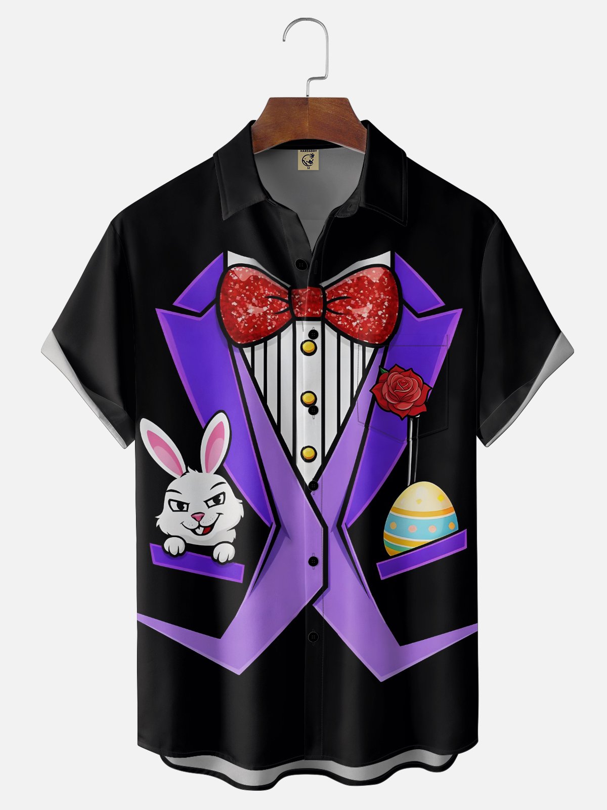 Moisture-wicking Easter Bunny Eggs Chest Pocket Casual Shirt