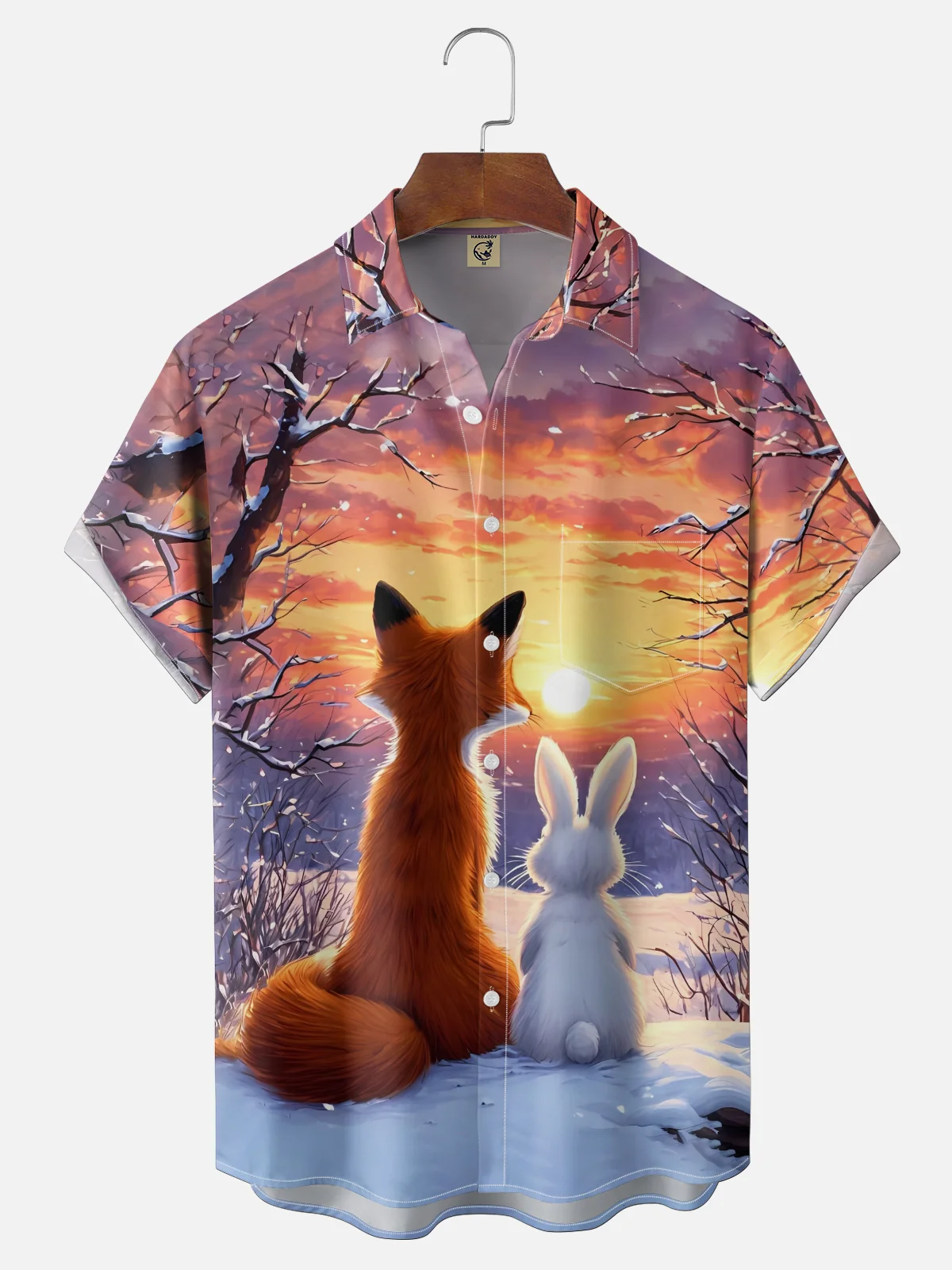 Moisture-wicking Easter Bunny Fox Chest Pocket Casual Shirt