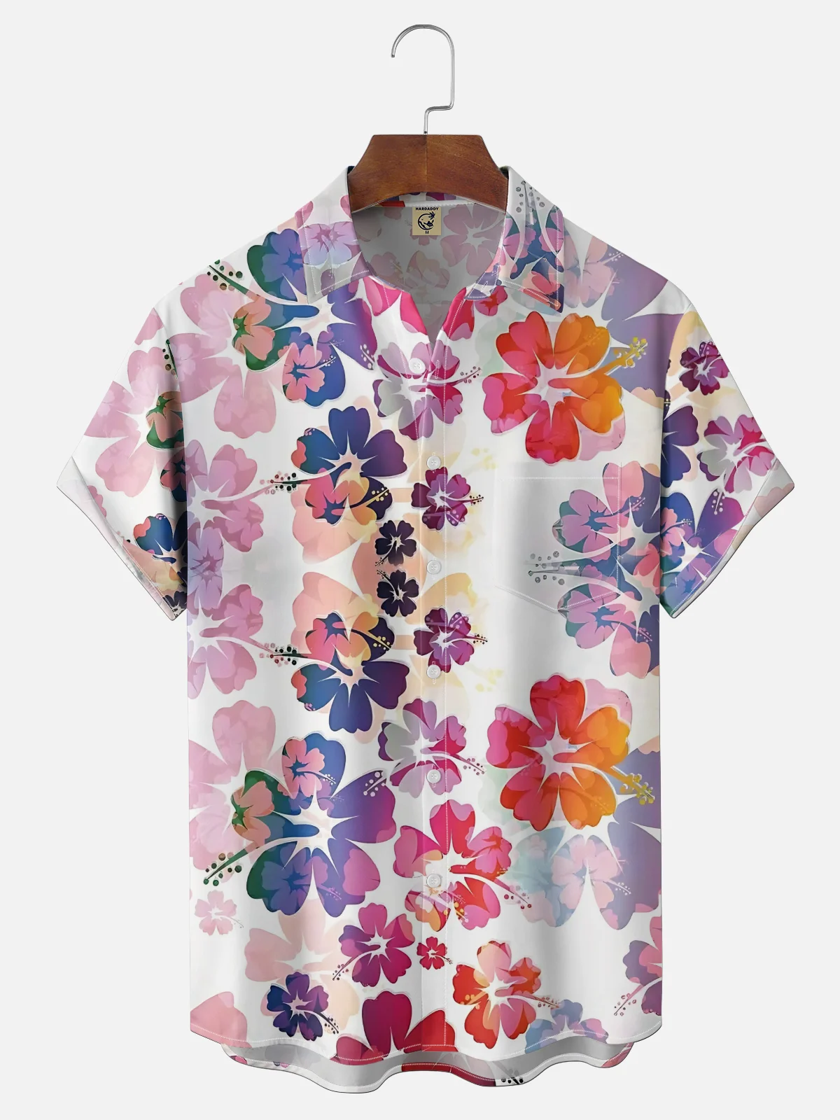 Moisture-wicking Floral Gradient Chest Pocket Hawaiian Shirt