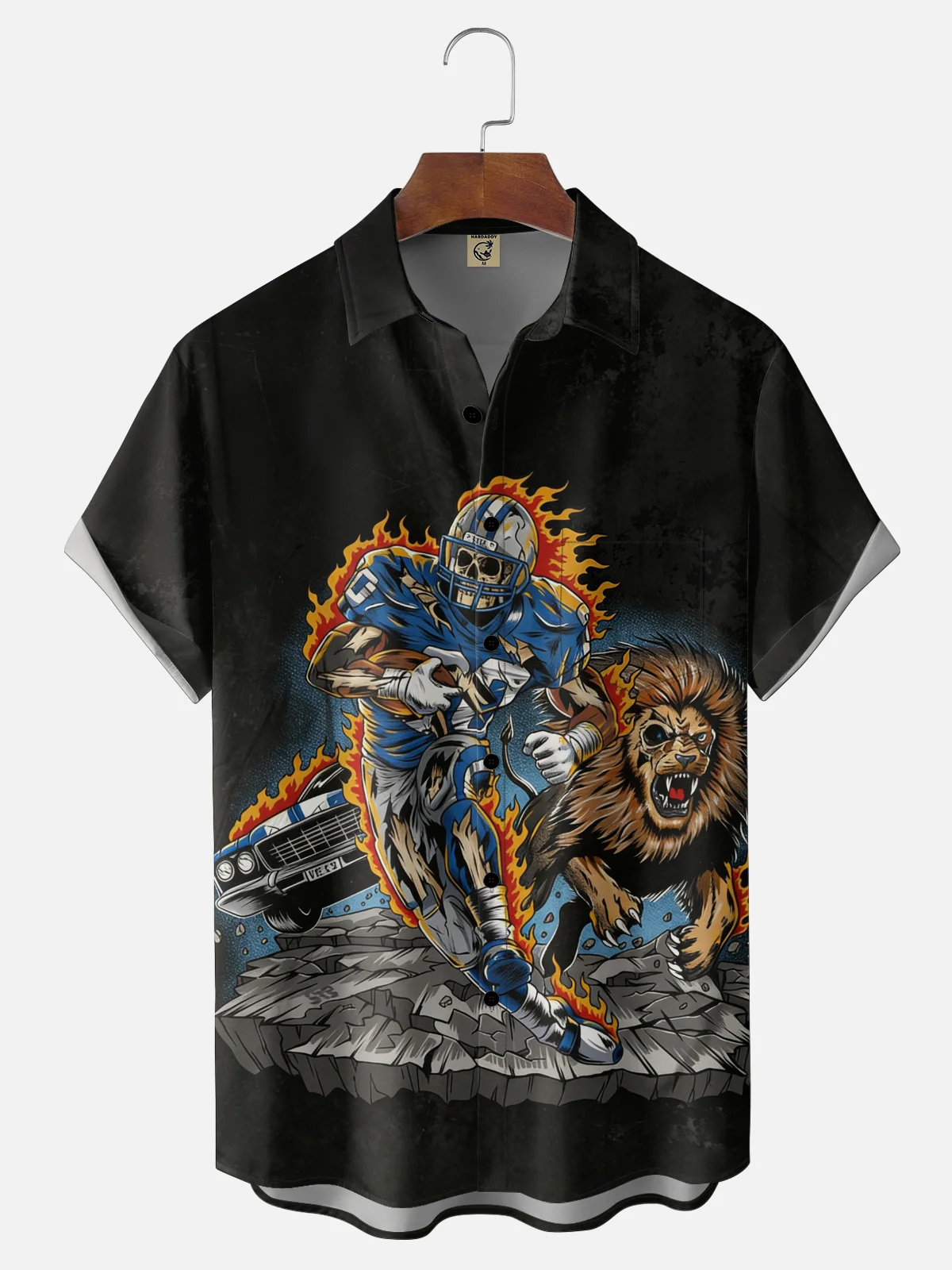 Moisture-wicking Football Lion Skull Chest Pocket Casual Shirt