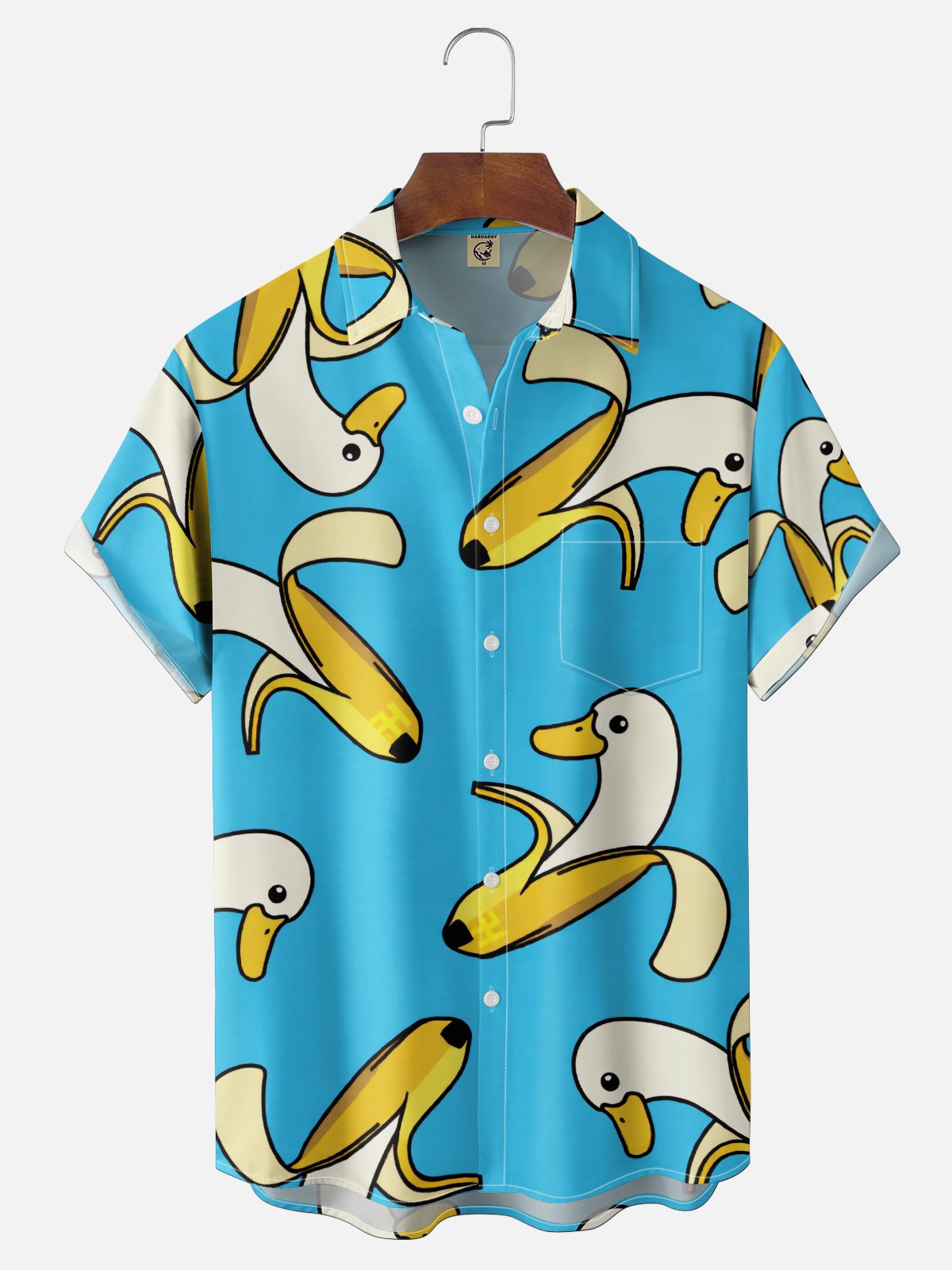 Moisture Wicking Fun Banana Goose Chest Pocket Holiday Hawaiian Shirt