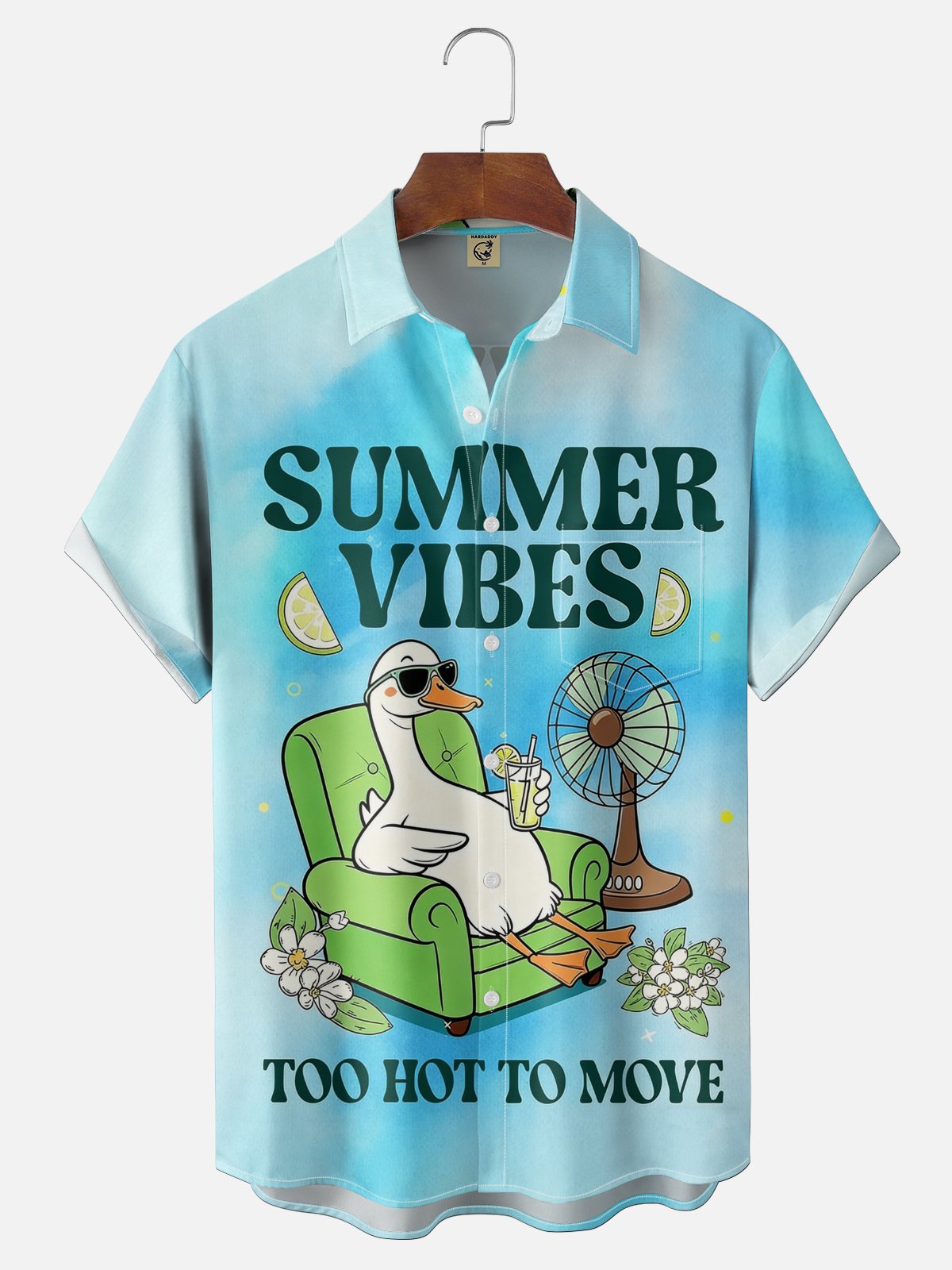 Moisture Wicking Fun Big White Duck Chest Pocket Hawaiian Shirt