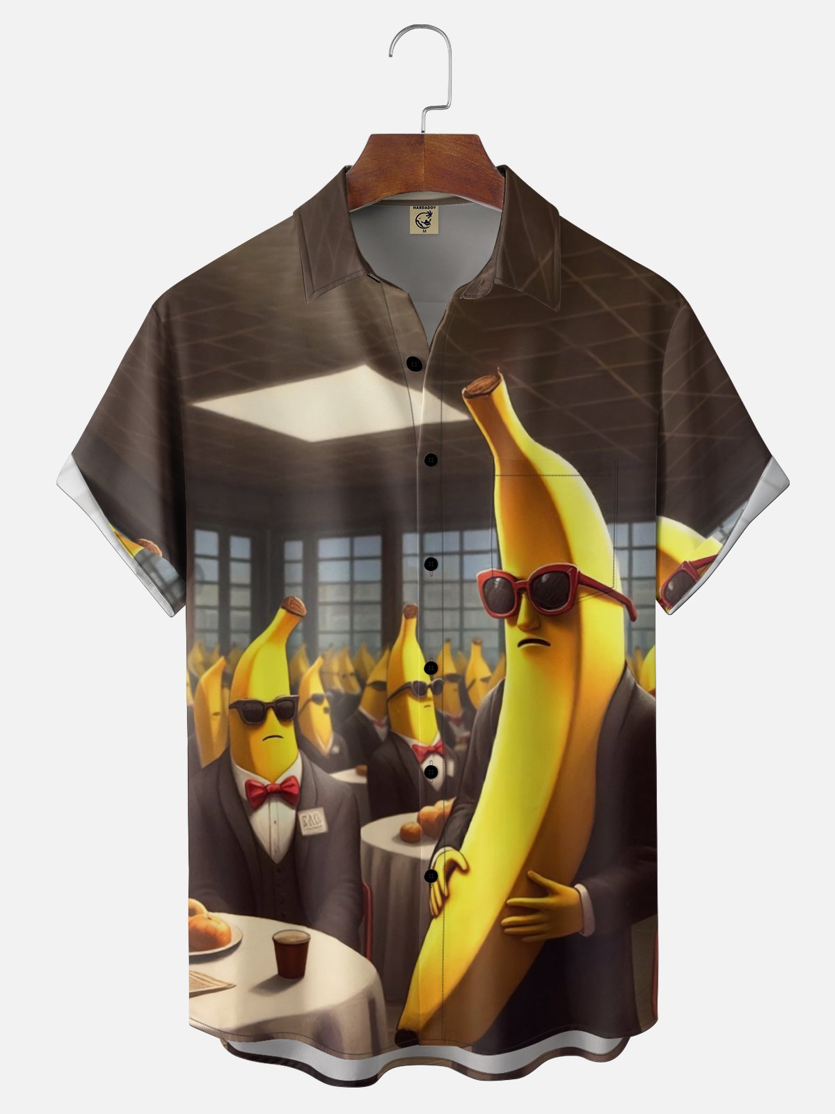 Moisture Wicking Fun Suit Banana Gentlemen Party Chest Pocket Holiday Hawaiian Shirt