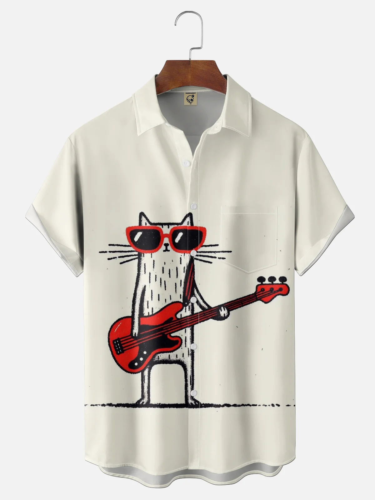 Moisture Wicking Funny Cat Guitarist Chest Pocket Holiday Shirt